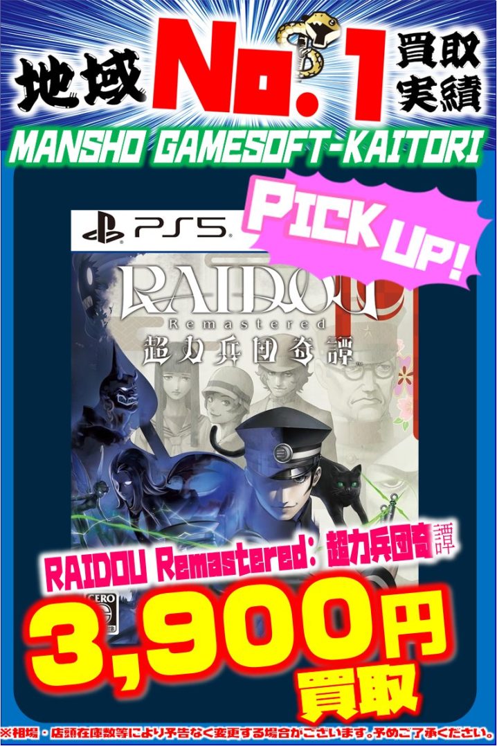 #PS5 ソフト買取情報‼ 大人気タイトルにつき在庫が足りません(´;ω;`) 【 #RAIDOU Remastered:超力兵団奇譚 】3,900円買取🔥 期間限定なので、在庫が集まり次第…
