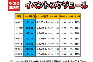 カード担当からお知らせ✉️ 1月のイベントスケジュールになります。 イベント開催日の際は、デュエルスペースのご移動ご協力をお願い致します。 イベント/大会の開催予定や内容は予告無く変更になる場…