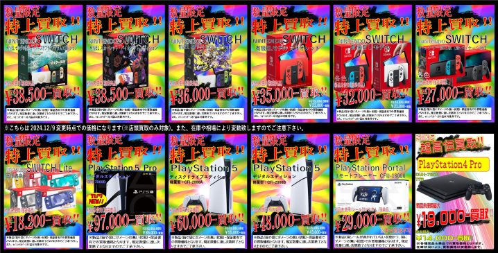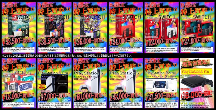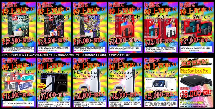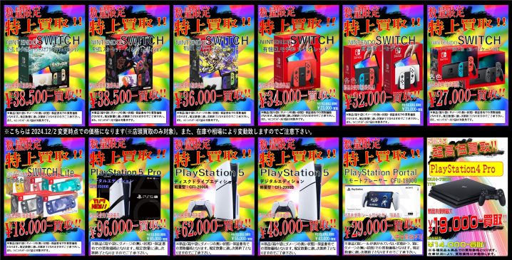 ゲームハード超々高価買取!! 【新品未使用】PS5 Pro/PS5/有機ELSWITCH/バッテリー強化版SWITCH/SWITCH Lite/PS4/プレイステーションポータルリモートプレーヤーを超高額買取中!! (P…
