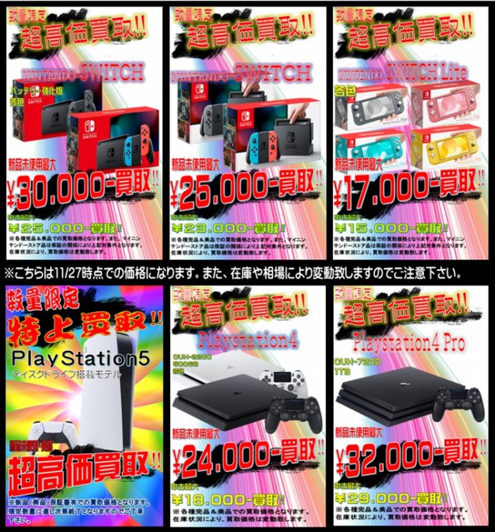 ゲームコーナーよりお知らせ ゲームハード超高価買取継続中!! ※買取価格は11/27時点での価格になります。 在庫や相場により予告無く変動致しますので、ご了承ください。 **************** こちら↓もぜひチ…