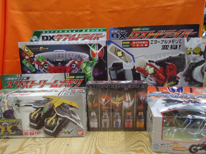 おもちゃ担当より 本日、変身ベルト等を品出ししました。 主に仮面ライダーWの商品になってます! ベルトにメモリ中古ですがかなり状態は良い方だとおもいますので 気になる方は、ぜひ当店までお越しください。