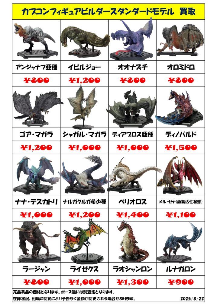 カプコンフィギュアビルダークリエイターズモデルのチラシ更新を行いました。 モンハンに限らず買い取りますので是非お持ちください! ※2025/8/22現在の価格となります。 在庫状況・状態によってお値段が変動いたします。予…