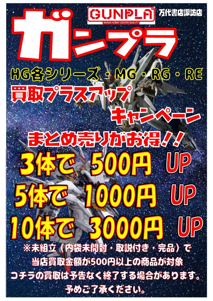 ✨おもちゃコーナーより ガンプラプラスアップ買取、HGUC以外のHGシリーズ買取保証を始めました✨ HG各シリーズ、MG.RG.REの当店買取金額が500円以上の商品か対象で買取プラスアップ致…