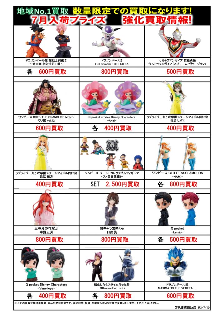 ✨おもちゃコーナー より 7月入荷予定プライズフィギュア買取チラシのお知らせ✨ たくさんの買取お待ちしておりま〜す(*゚▽゚)ノ ※2021/7/11 現在の買取価格となります。…