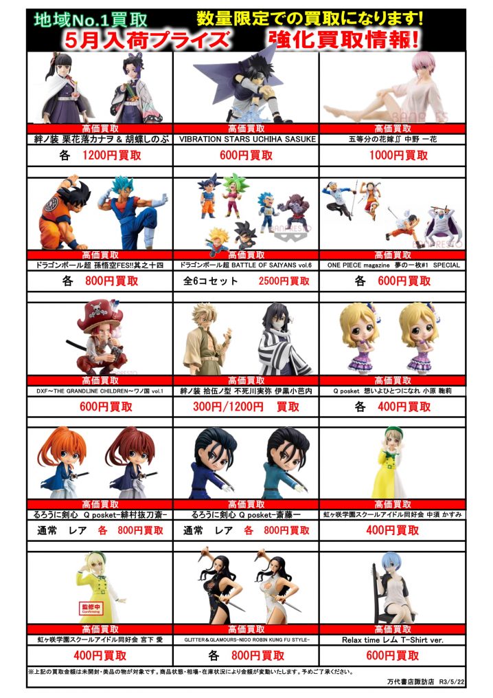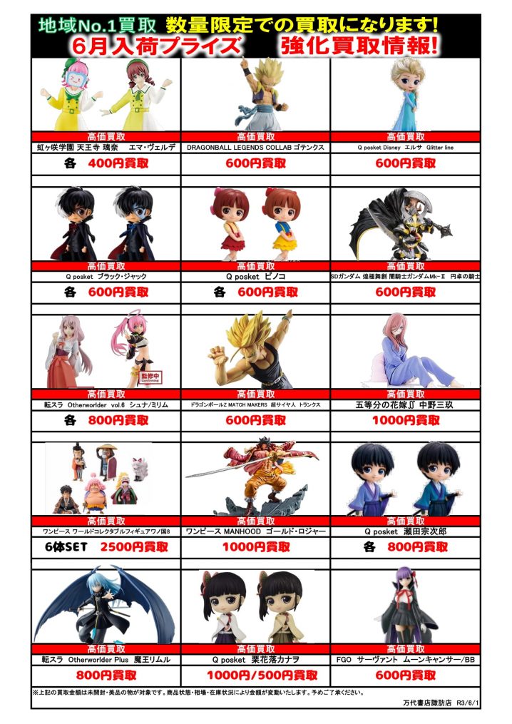✨おもちゃコーナーより6月入荷予定プライズフィギュア買取のお知らせ✨ 6月入荷予定プライズフィギュア買取チラシが出来ました!!! 買取をご希望のお客様はぜひ、当店にお持ちくださいませ…