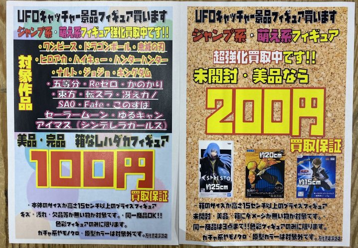 ✨おもちゃコーナーよりプライズフィギュア強化買取のお知らせ✨ この度、UFOキャッチャー景品フィギュア(プライズ)の買取保証を始めました👍👍👍 …