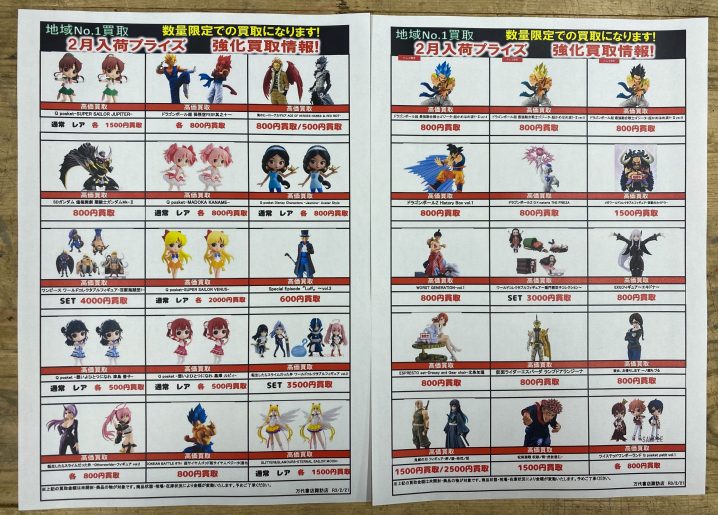 ✨おもちゃコーナーより2月入荷予定プライズフィギュア買取チラシ更新のお知らせ✨ たくさんの買取お待ちしておりま〜す(*゚▽゚)ノ ※2021/2/21現在の買取価格となります。 在庫状況・状態…