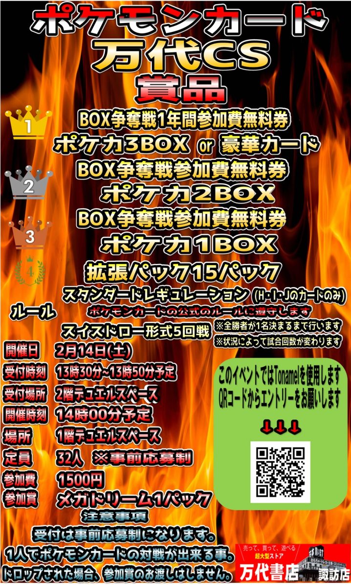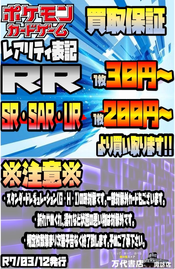 ポケカ担当からお知らせです!📢 万代書店諏訪店で行われている ポケモンカードのイベントに ご参加いただき誠にありがとうございます🙇 突然ですが!2025年度最後のイベント✨ …