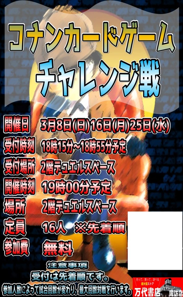 カード担当からお知らせ📢 コナンカードゲームのイベントを開催します!🔥🕵️ 受付は18時15分から18時55分の間デュエルスペースで行います。 受付は先着順と…
