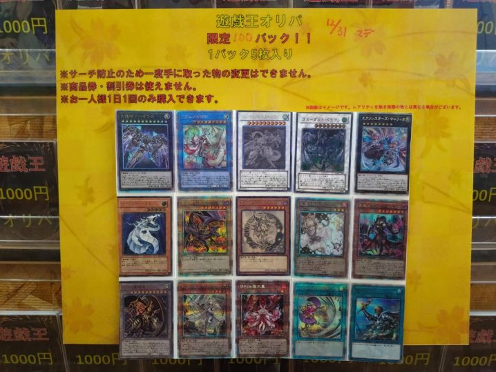 遊戯王担当よりお知らせ! 遊戯王1000円オリパの当たりを更新しました! いつもより当たりを豪華にしてますので是非ご利用ください!