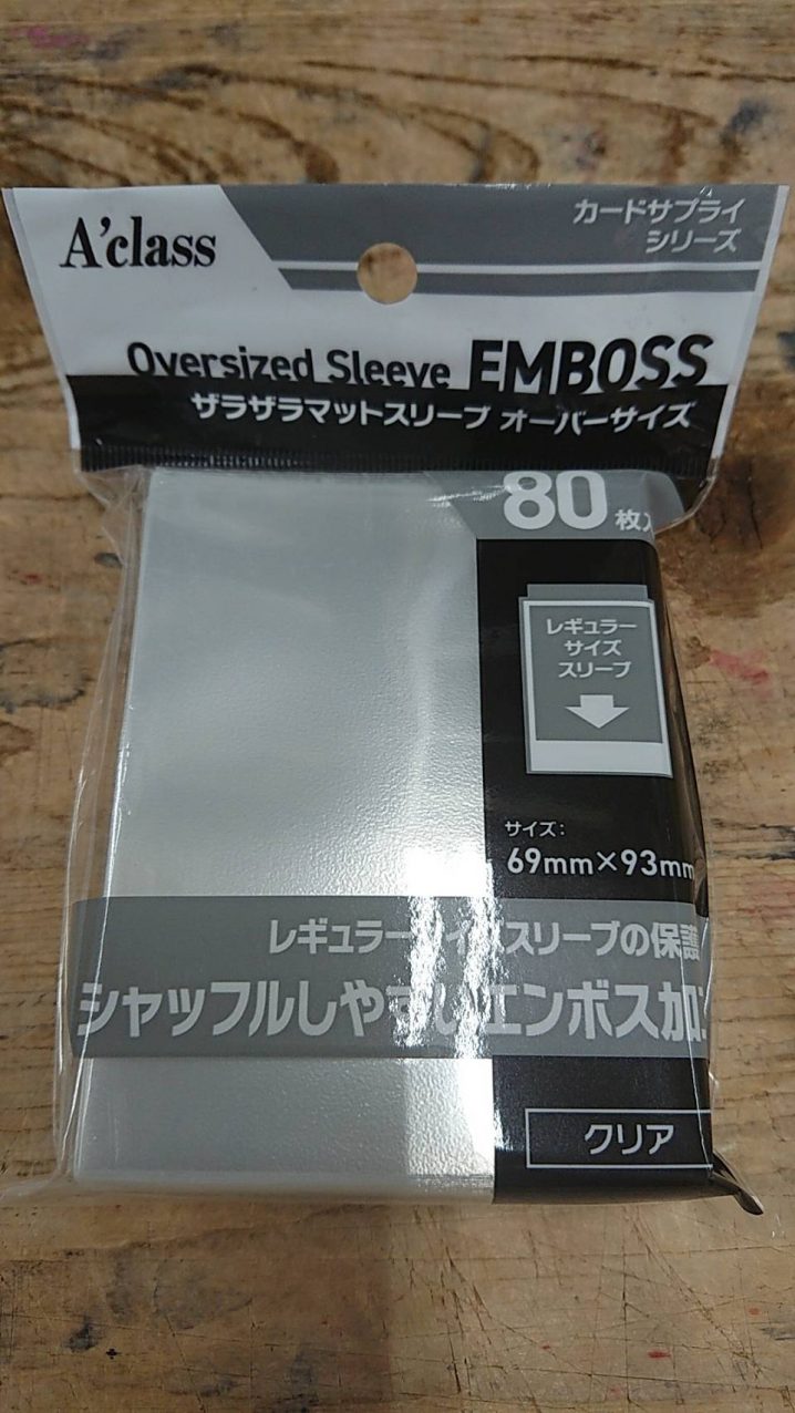 カード担当よりお得情報です! アクラス ザラザラマットスリーブ オーバーサイズ 通常定価¥580(税別)の所 なんと値下げして ¥500(税別)にて販売中! キャラクタースリーブの保護などにどうでしょうか! 内容は80枚…