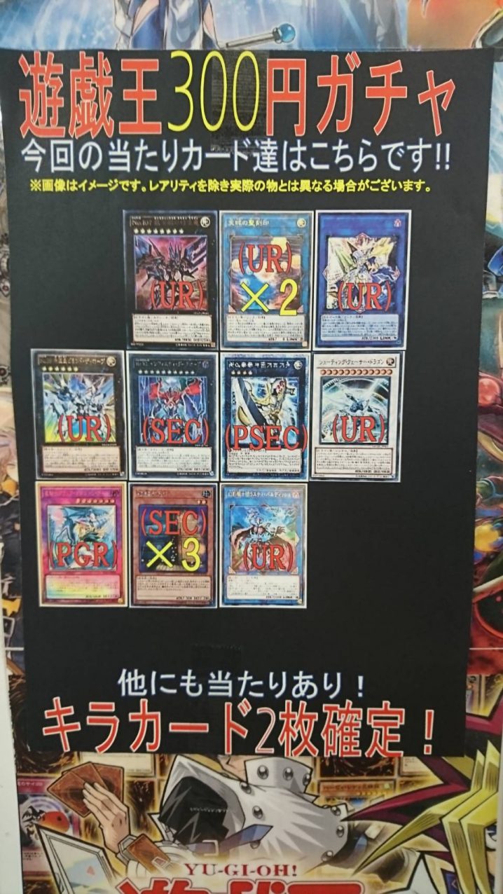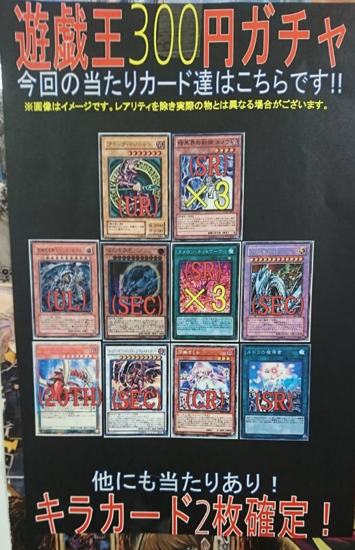 遊戯王コーナーよりお知らせです! 300円ガチャ、200円ガチャどちらも当たりの内容を更新しました! 良カードが手に入るチャンスですのでよろしければご利用ください!