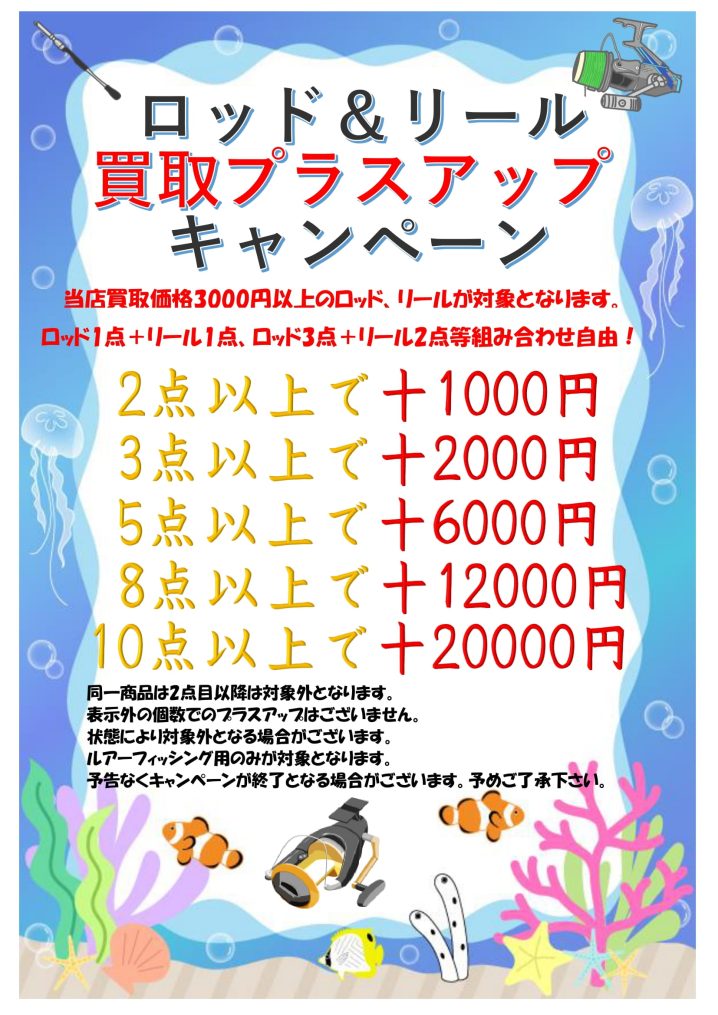 ロッドとリールのプラスアップキャンペーンを開始いたします! ロッドとリール、組み合わせは自由となっております。 当店買取価格が3000円以上の品が対象となります。 この機会に是非お持ちください! ※2025/1/10現在…