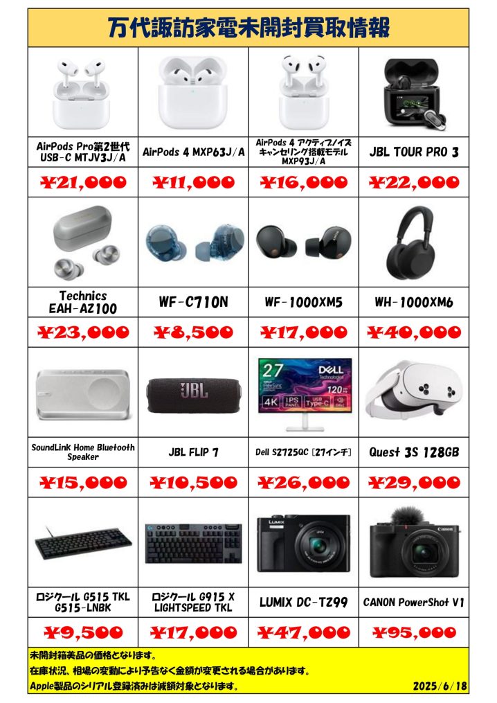 今月の家電買取チラシを更新しました! 未使用・中古問わず買取しておりますので、是非お持ちください! ※2025/6/19現在の価格となります。 在庫状況・状態によってお値段が変動いたします。予めご了承ください。 ****…