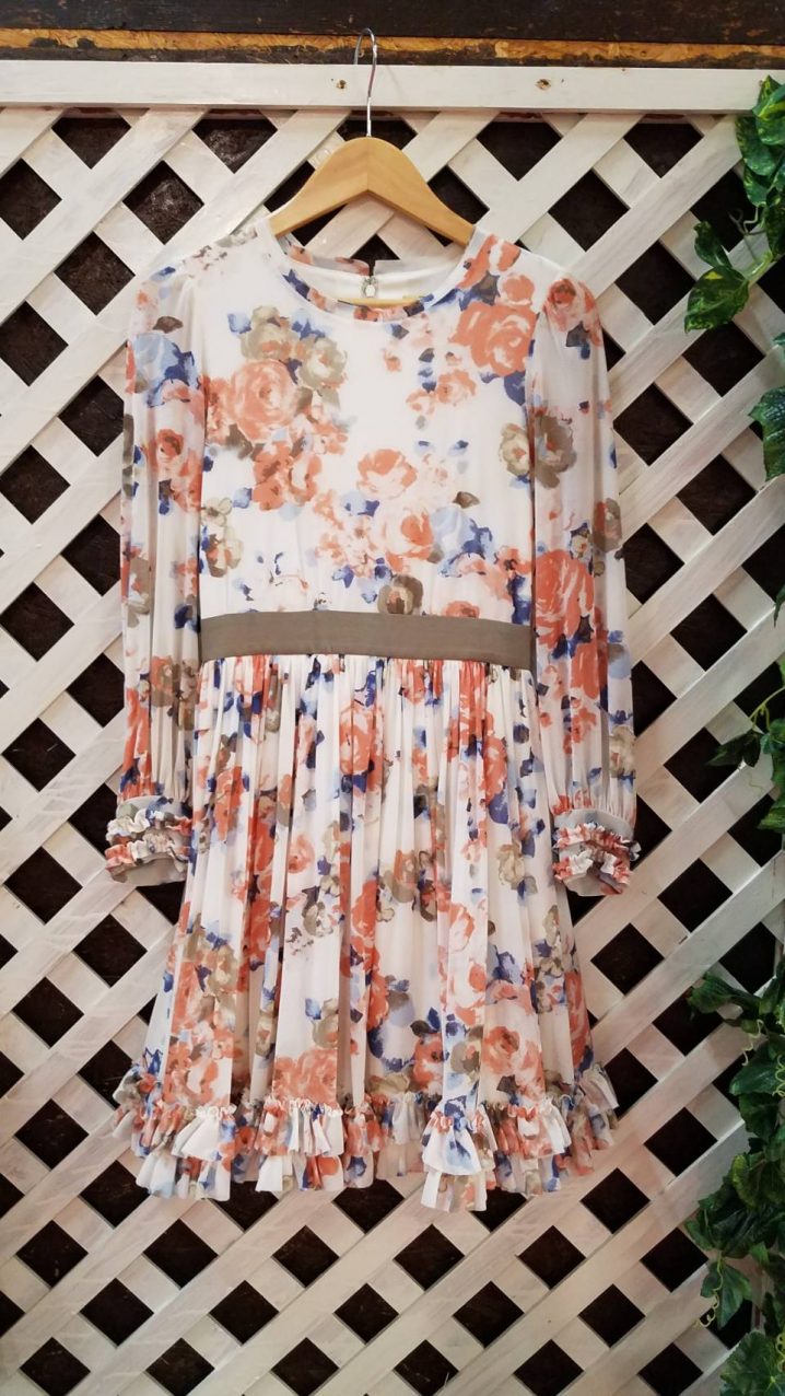 ★レディース古着コーナーから🌠おすすめお洋服のご紹介★ FRAY I.D のワンピース…♡ (size O)¥2580+tax 手首にもフリル… 花柄プリント… …
