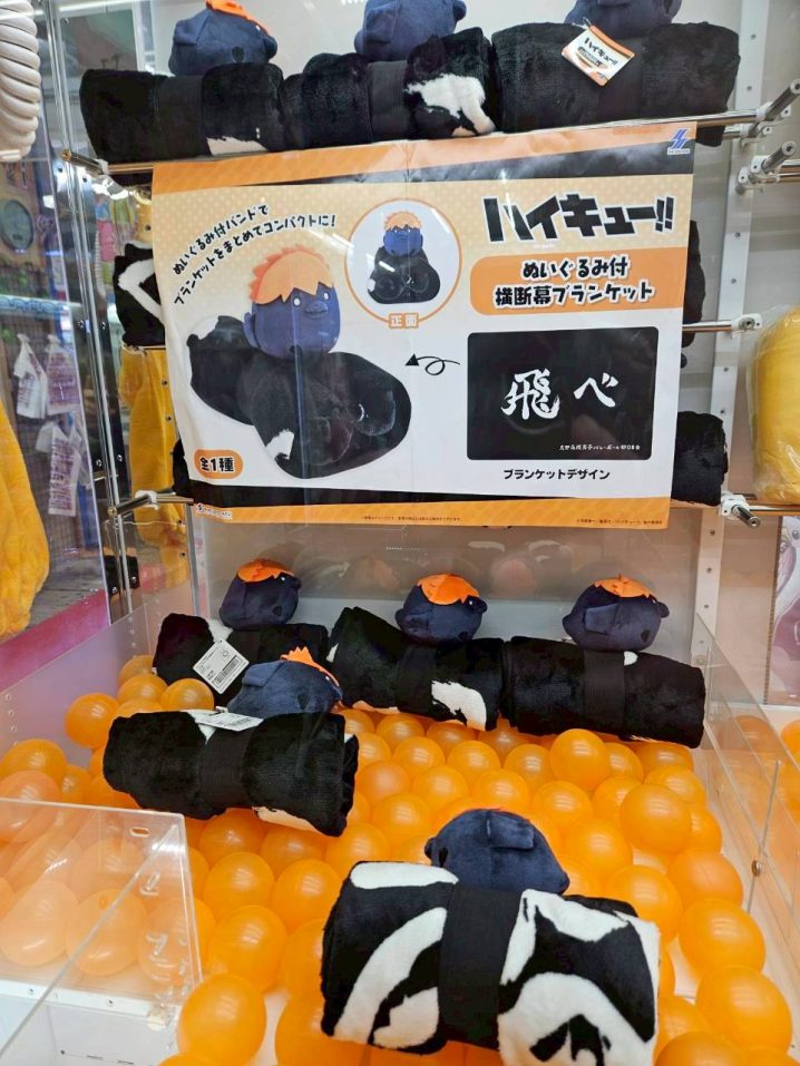 ハイキュー!! ぬいぐるみ付き 横断幕プランケット ヒナガラスのぬいぐるみがつしたゴムバン ド付きの烏野高校の 横断幕風のプランケットです!✨ 他にも、入荷した景品が沢山ありますので気になる方は、是非当店ま…