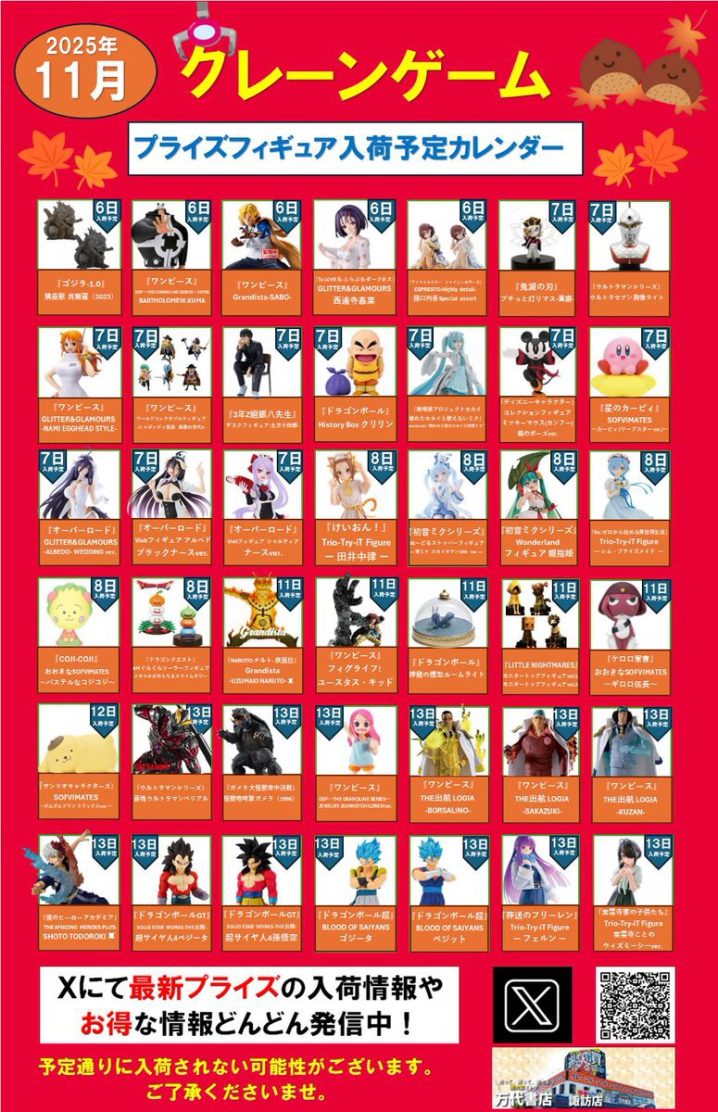 ⭐️2025年11月プライズフィギュア入荷予定カレンダー⭐️