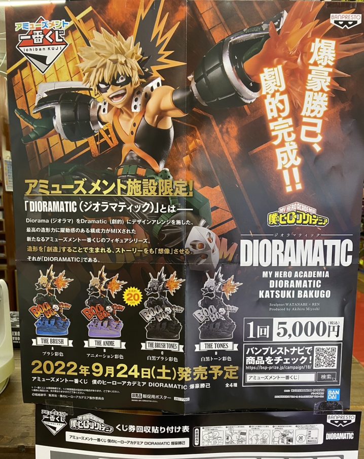 ✨万代書店諏訪店より アミューズメント一番くじ販売のお知らせ✨ DIORAMATIC 爆豪勝己をレジにて販売中です‼️ お買い求め際はぜひ、当店にお越…