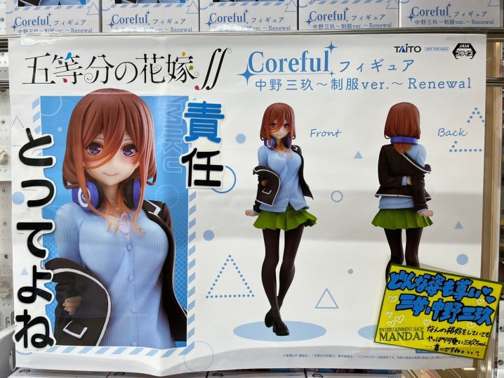 万代書店諏訪店アミューズコーナーより稼働中商品のお知らせ 五等分の花嫁 Coreful フィギュア 中野三玖~制服ver.~ Renewal デート・ア・ライブ Ⅳ Coreful フィギュア 星宮六喰~水…