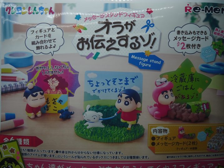 ★万代書店諏訪店アミューズコーナーより稼働中商品のお知らせ★ しんちゃん達がいるからもう忘れる心配なし‼️ #クレヨンしんちゃん メッセージスタンドフィギュア オラがお伝えするゾ!  …