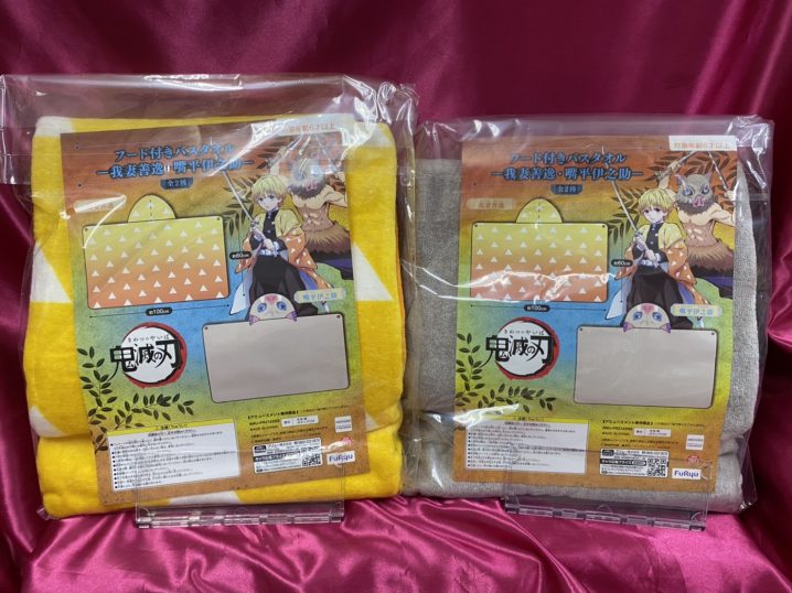★万代書店諏訪店アミューズコーナー入荷&稼働情報★ ✩今回のラインナップ✩ 【鬼滅の刃 フード付きバスタオル-我妻善逸・嘴平伊之助-】 お風呂上りに善逸・伊之助になりきろう! フード付きだから濡れた頭もしっかり拭き取れる…