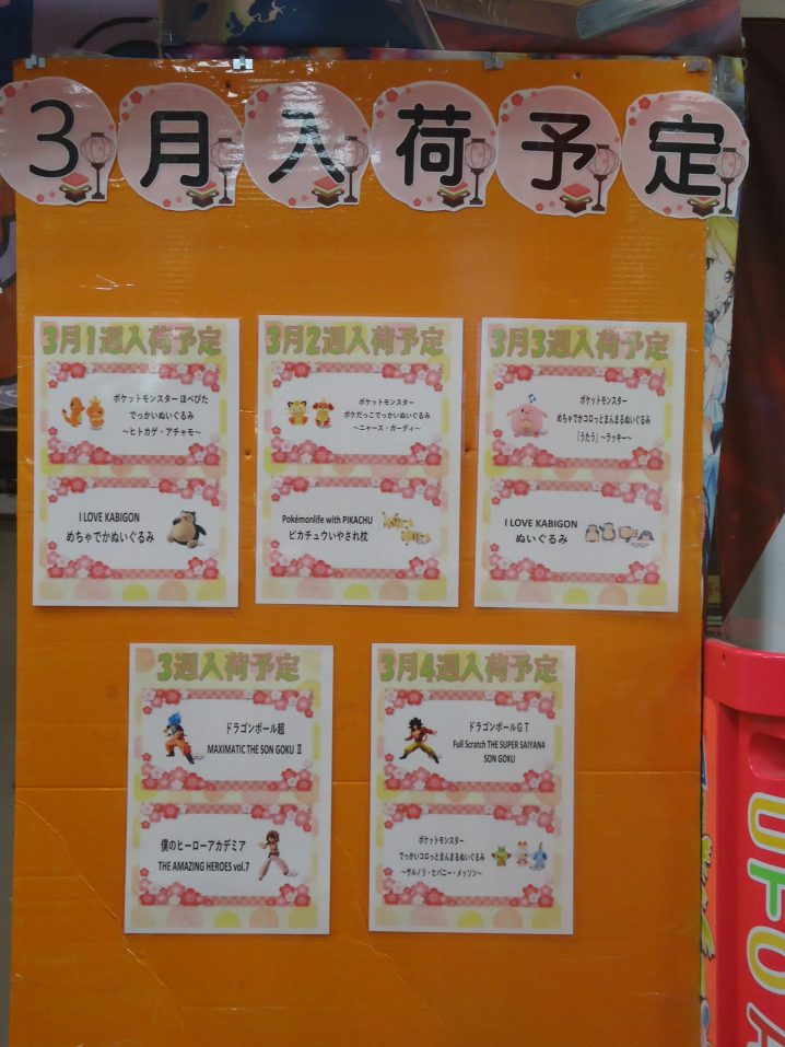 ★アミューズコーナーより3月のキャッチャー入荷景品のお知らせ★ 今月の目玉景品は、3月1週入荷予定の 「I LOVE KABIGON めちゃでかぬいぐるみ」! 人気のカビゴンがI LOVEシリーズに再び登場! 約35㎝と…