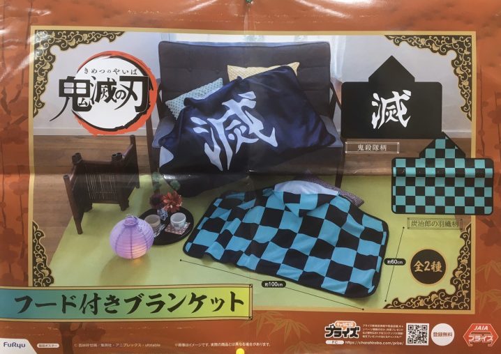 ★クレーンゲームコーナーからのお知らせ★ 鬼滅の刃の商品が入荷しました! フード付きブランケットです! 炭治郎と鬼殺隊柄の2種です! 数量に限りがございますので、欲しいと思った方はお早めにゲットしてください!  …