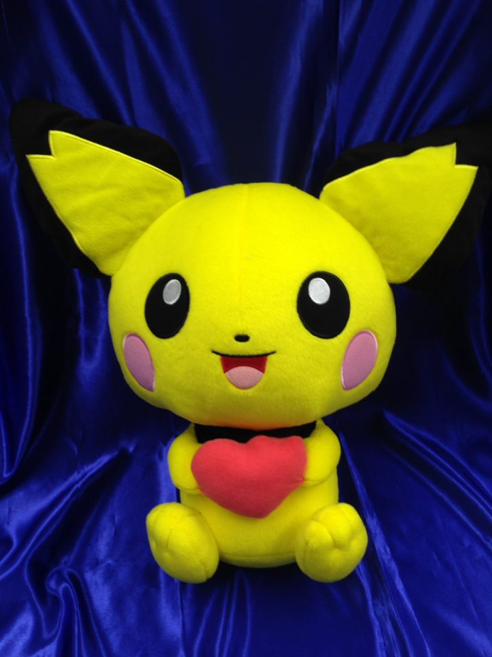 ~万代書店諏訪店アミューズコーナー稼働情報~ 今回ご紹介するのは ぬいぐるみ です! [ポケットモンスター サン&ムーン もぐもぐタイム めちゃでかピチューぬいぐるみ] ポケモンのお食事シーンがぬいぐるみに!! 手には食…