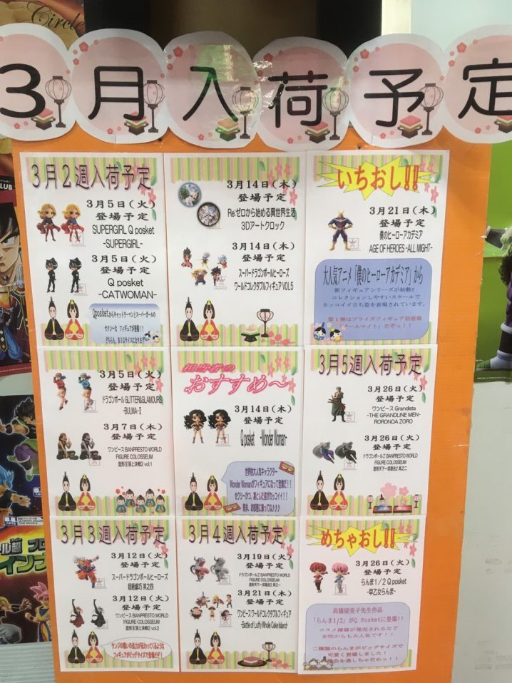 アミューズコーナーからのお知らせです! 新商品入荷しました! Re:ゼロの 時計とウォレットになります! 数に限りがございますので ぜひお見逃しなく! 3月12日はドラゴンボールとワンピースのフィギュアが 入荷予定になり…