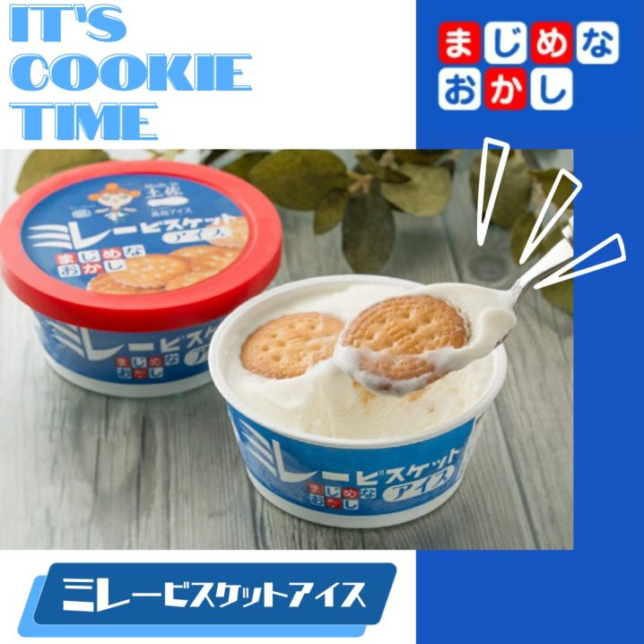 万代書店諏訪店スイーツコーナーより☆ 本日ご紹介するのは… 『ミレービスケットアイス』税込200円 粉砕したミレービスケットをアイスベースに混ぜ込み、 アイスの上にもトッピング~(/・ω・)/ さくさくのミレービスケット…
