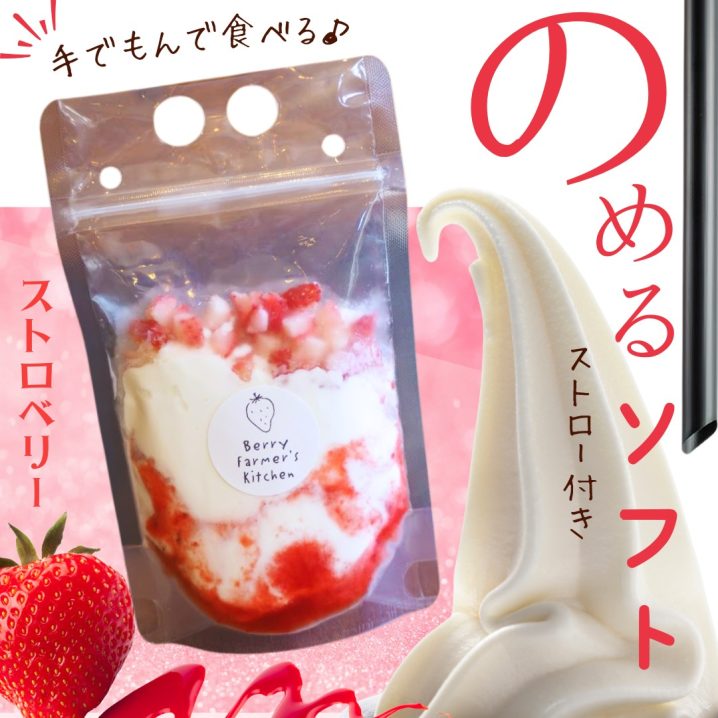 万代書店諏訪店スイーツコーナーより☆ 新商品のご紹介です(/・ω・)/ 『のめるソフト(ストロベリー)』 九州産の濃厚なピュアミルクに、国産いちごを使用! 甘酸っぱい美味しさが合わさったソフトを “ぎゅっ”とパックに閉じ…