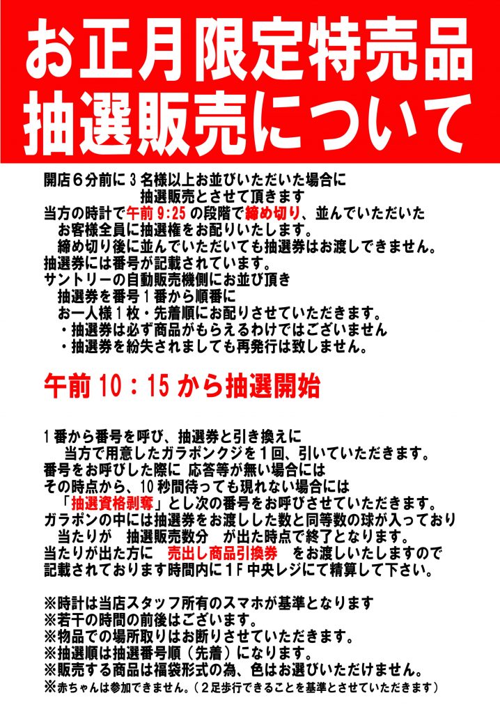 前日に引き続き「ガラポンチャンス」開催してます°˖✧◝(⁰▿⁰)◜✧˖° 景品はコチラ!!!! お買い上げ金額2000 円ごとに1枚 最大3枚 までお渡ししております! 皆さん!お買い物の後はガラポンにチャレンジしてくだ…