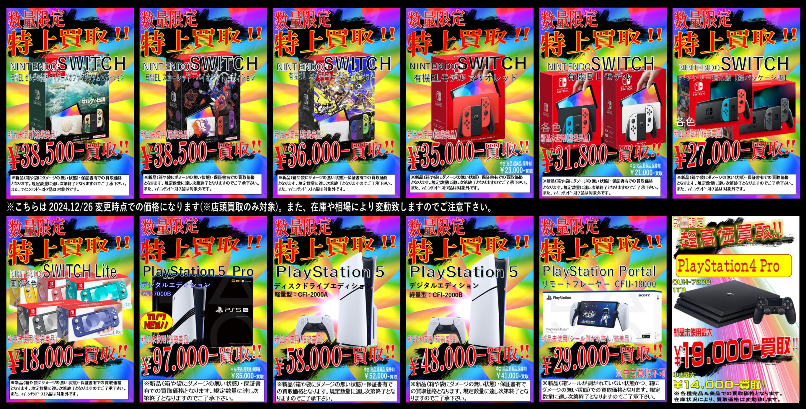 【新品未使用】PS5 Pro/PS5/有機ELSWITCH/バッテリー強化版SWITCH/SWITCH Lite/PS4/プレイステーションポータルリモートプレーヤーを超高額買取中!!数量集まり次第終了となりますのでお早めにお持ち下さい!