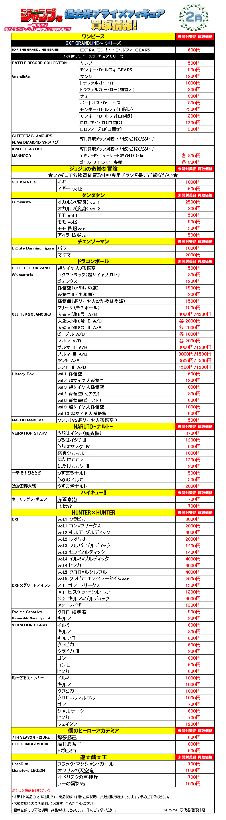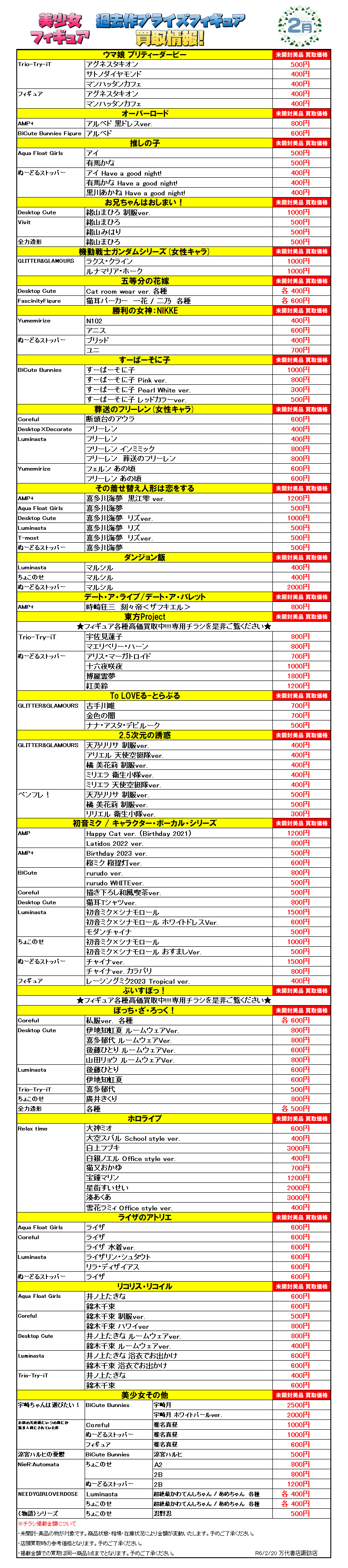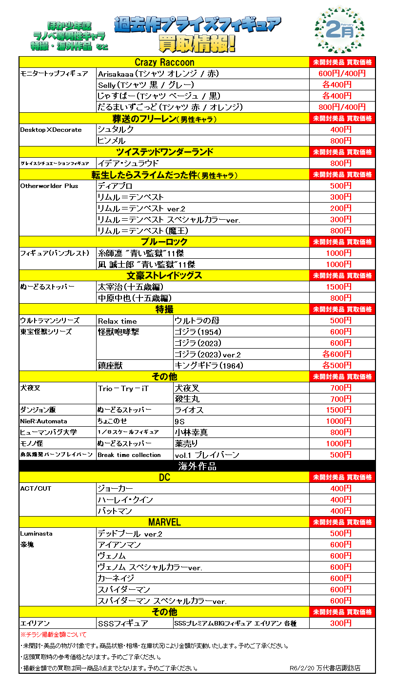 今月登場予定のプライズフィギュアの買取情報を更新いたしました(*>v<)ノ