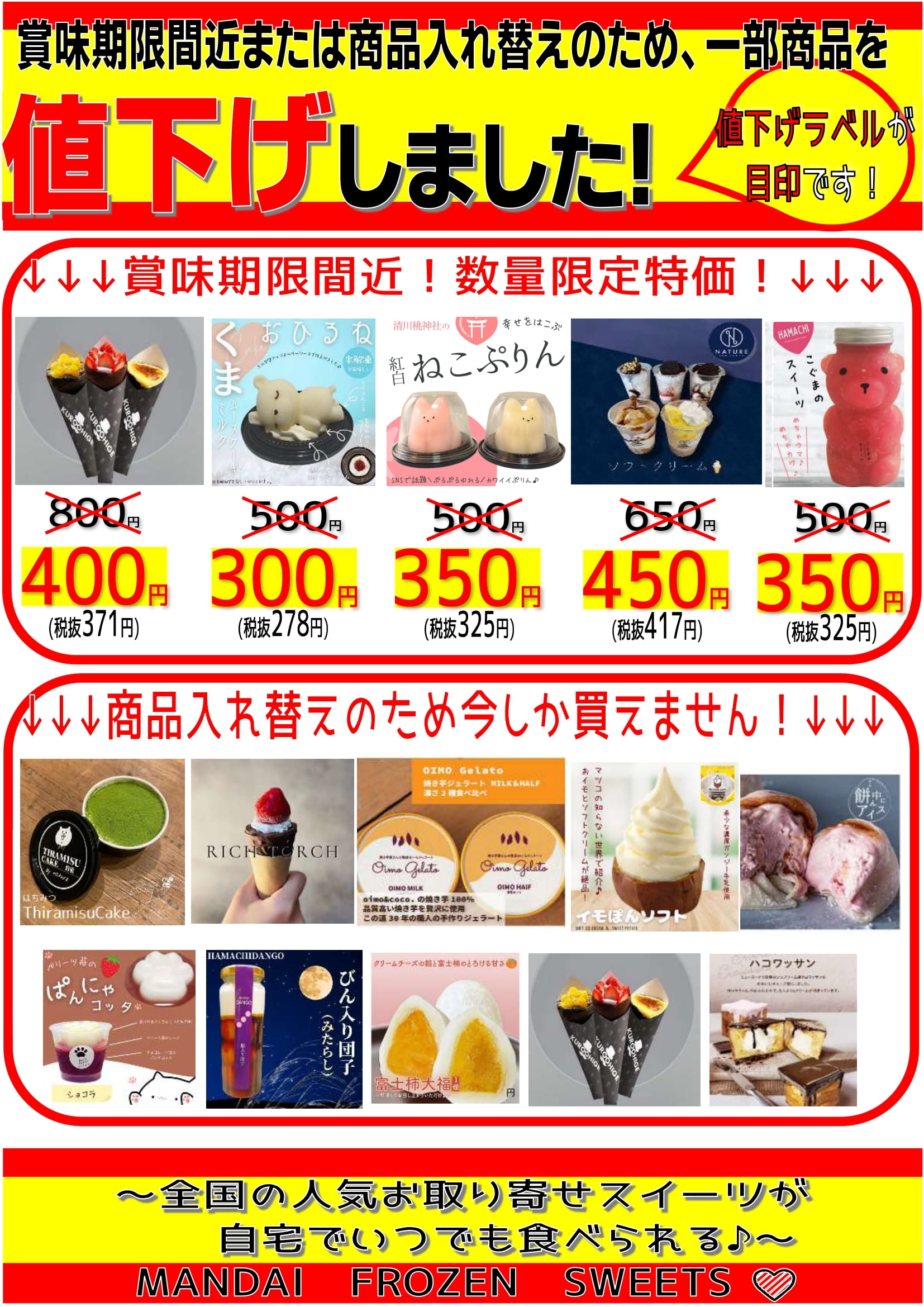 2025.03.08 お知らせ・ご案内 takalab_4 ■スイーツ値下げ情報!■ 万代書店諏訪店スイーツコーナーより お知らせです☆(/・ω・)/ 賞味期限間近、または商品入れ替えのため一部商品を値下げしました! 商品1個1個にラベル(値札)貼付があるものが対象で、 値下げ後の価格表示となっております♪ 気になっていたスイーツがお得に買えるかも?! ですよ~( *´艸`)♪ ——————————————————– 今後も商品紹介や入荷情報、 値下げ情報など発信していきますので 当ホームページをチェックしてくださいね♪ コメントを残す コメントをキャンセルメールアドレスが公開されることはありません。 ※ が付いている欄は必須項目ですコメント ※ 名前 ※ メール ※ サイト 新しいコメントをメールで通知 新しい投稿をメールで受け取る Δ