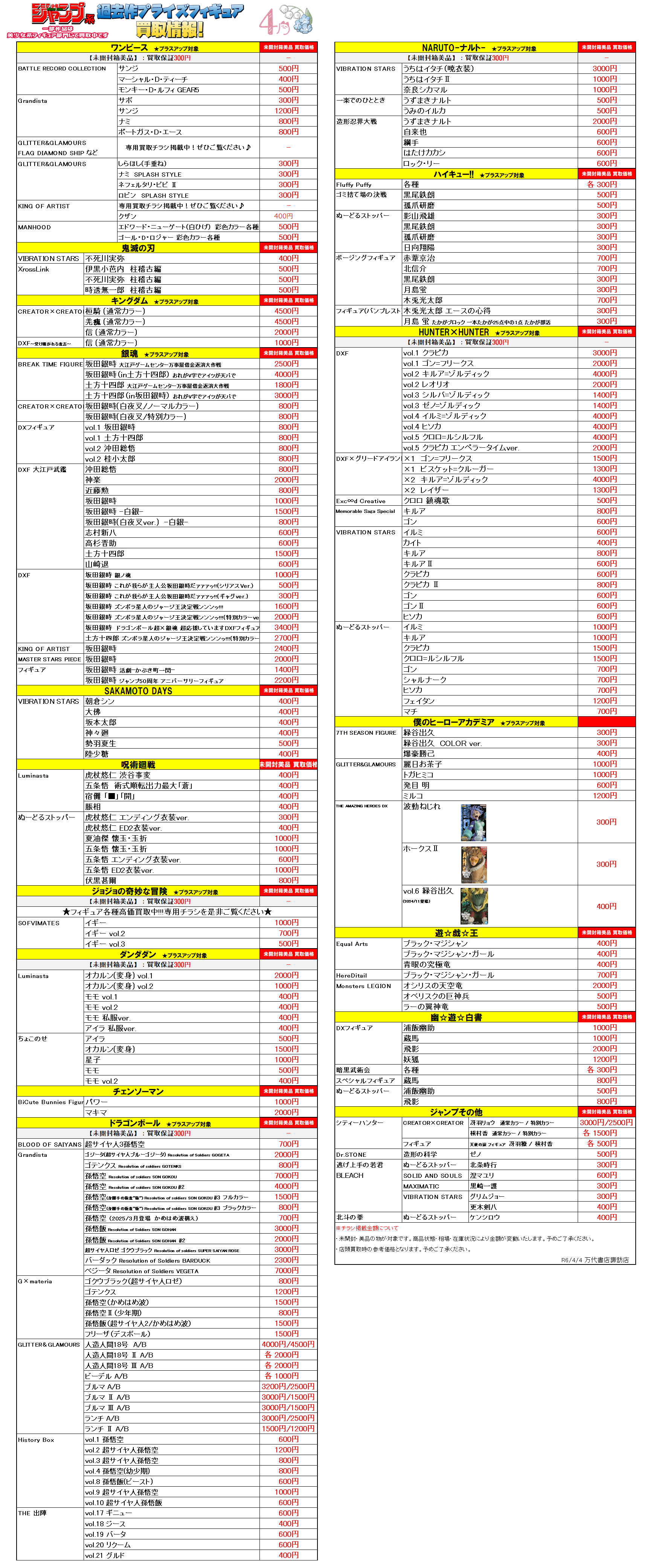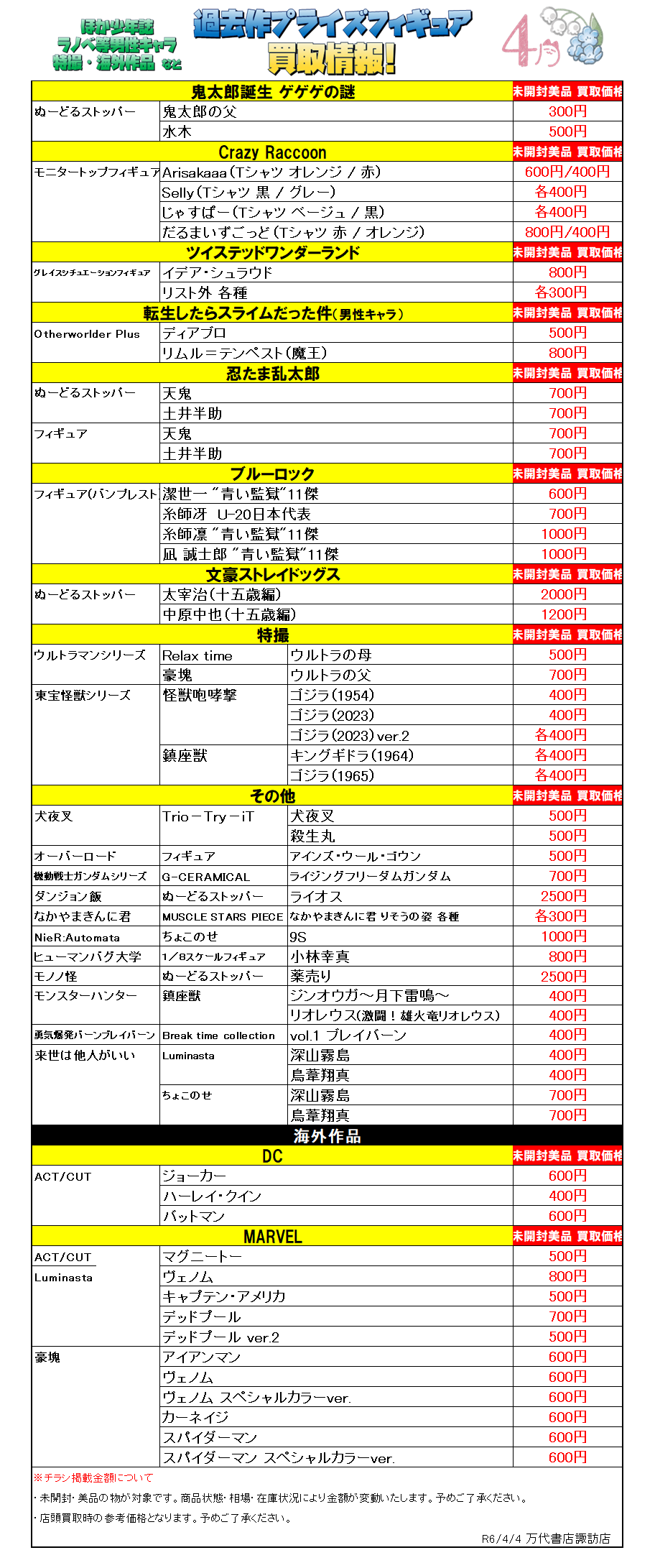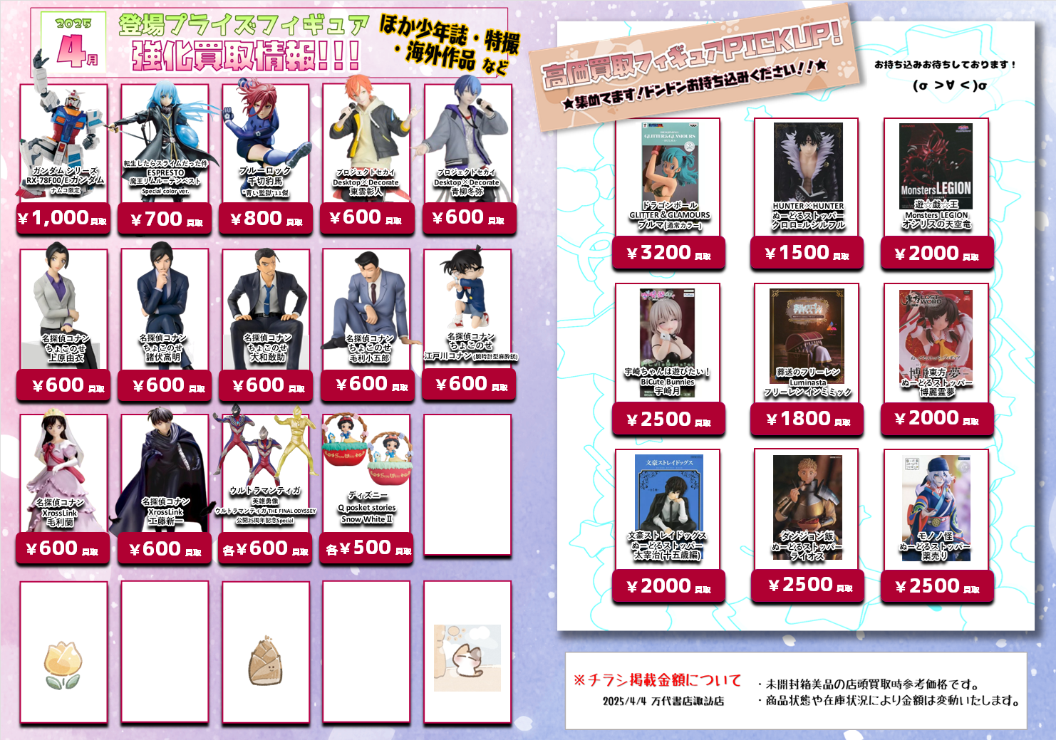 4月登場予定プライズフィギュアの買取チラシを作成いたしました(*>v<)ノ