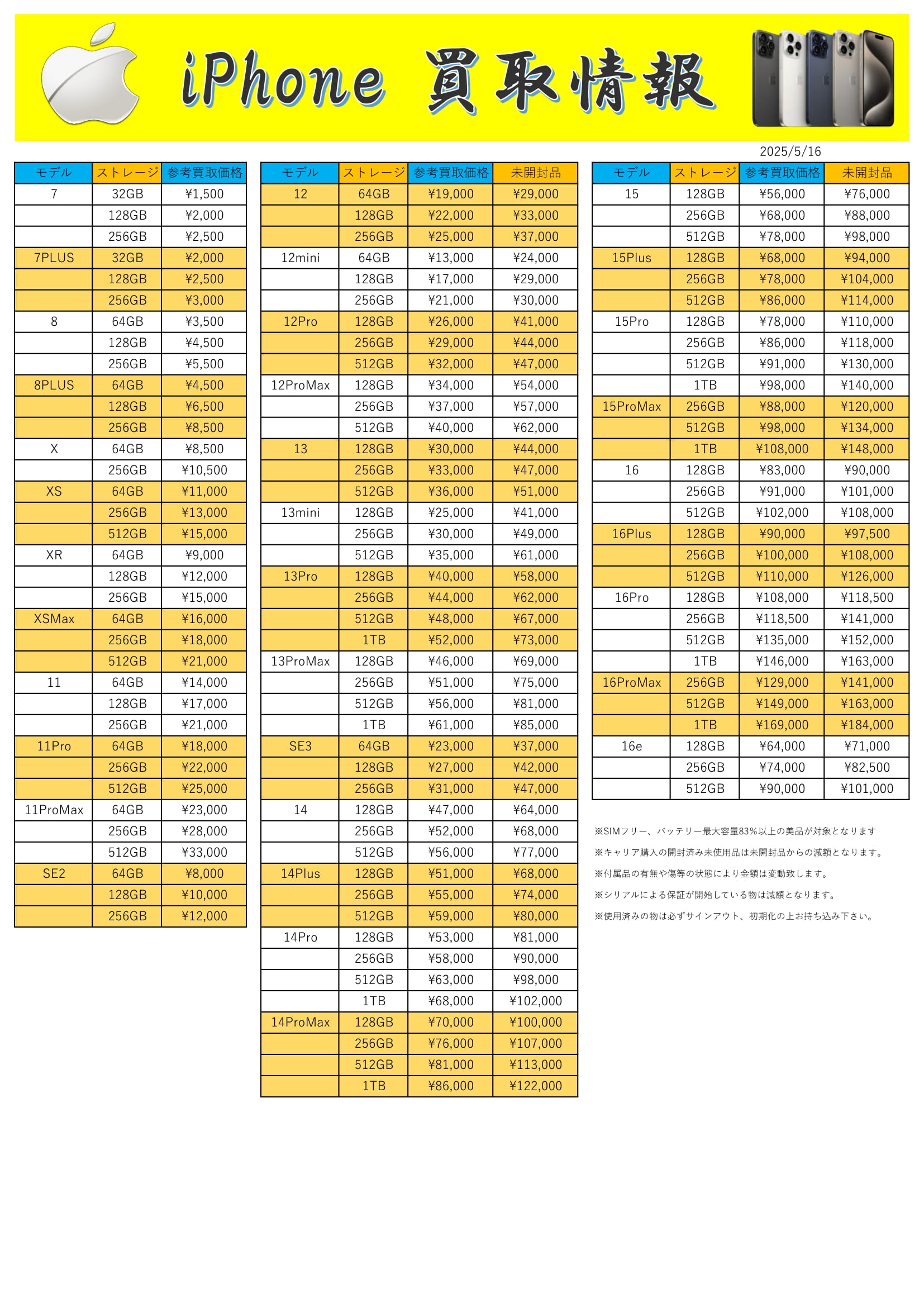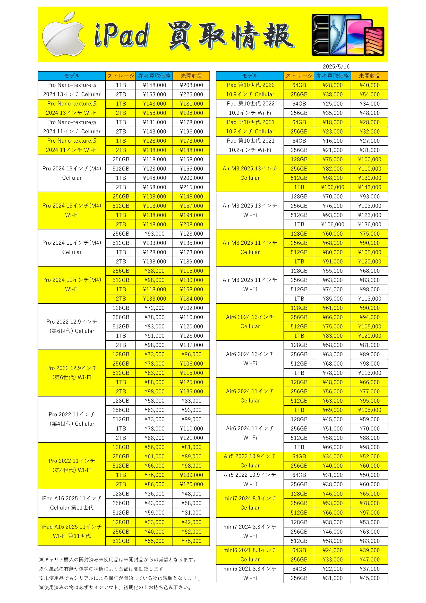 2025.05.17 買取情報 takalab_5 【お酒】★iPhone・iPadリスト更新★ iPhone、iPadの買取リストを更新いたしました。 押し入れに眠っている物等ございましたら是非お持ちください! ※2025/5/17現在の買取価格となります。 在庫状況・状態によってお値段が変動いたします。予めご了承ください。 **************** こちら↓もぜひチェックしてみてくださいね♪(*´▽`*) ・最新のイベント情報はこちら ・最新の買取情報はこちら コメントを残す コメントをキャンセルメールアドレスが公開されることはありません。 ※ が付いている欄は必須項目ですコメント ※ 名前 ※ メール ※ サイト 新しいコメントをメールで通知 新しい投稿をメールで受け取る Δ