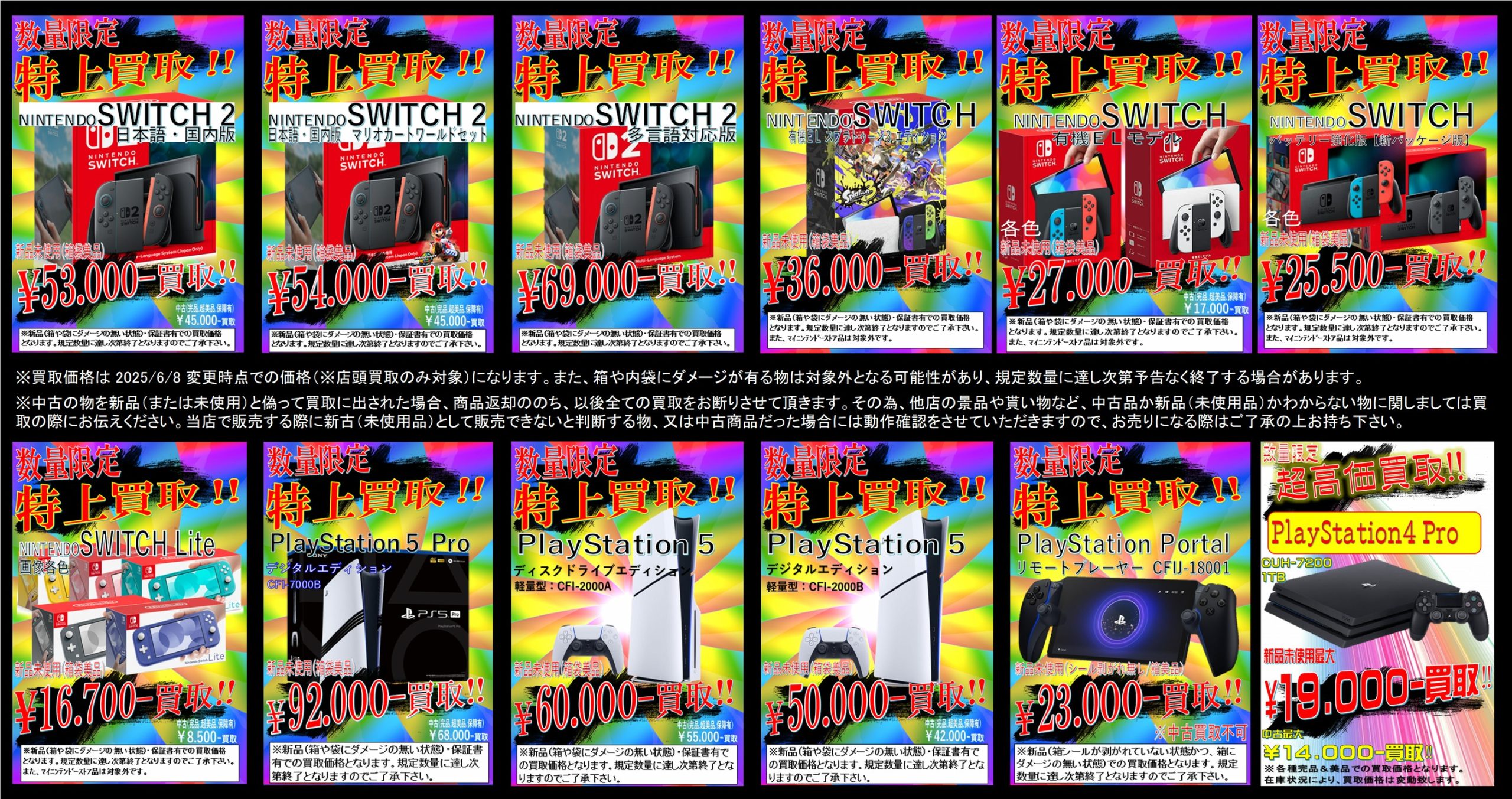 【新品未使用】SWITCH2/PS5Pro/PS5/有機ELSWITCH/バッテリー強化版SWITCH/SWITCH Lite/PS4/プレイステーションポータルリモートプレーヤーを超高額買取中!!