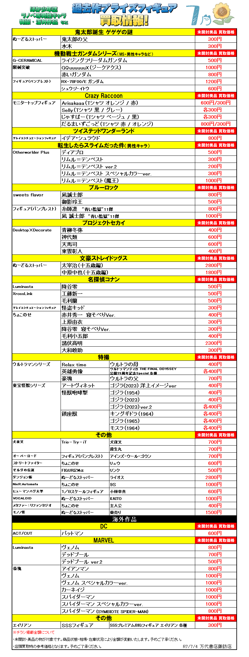 また、商品の状態、相場、在庫状況によっても買取価格は変動いたします。予めご了承ください。
