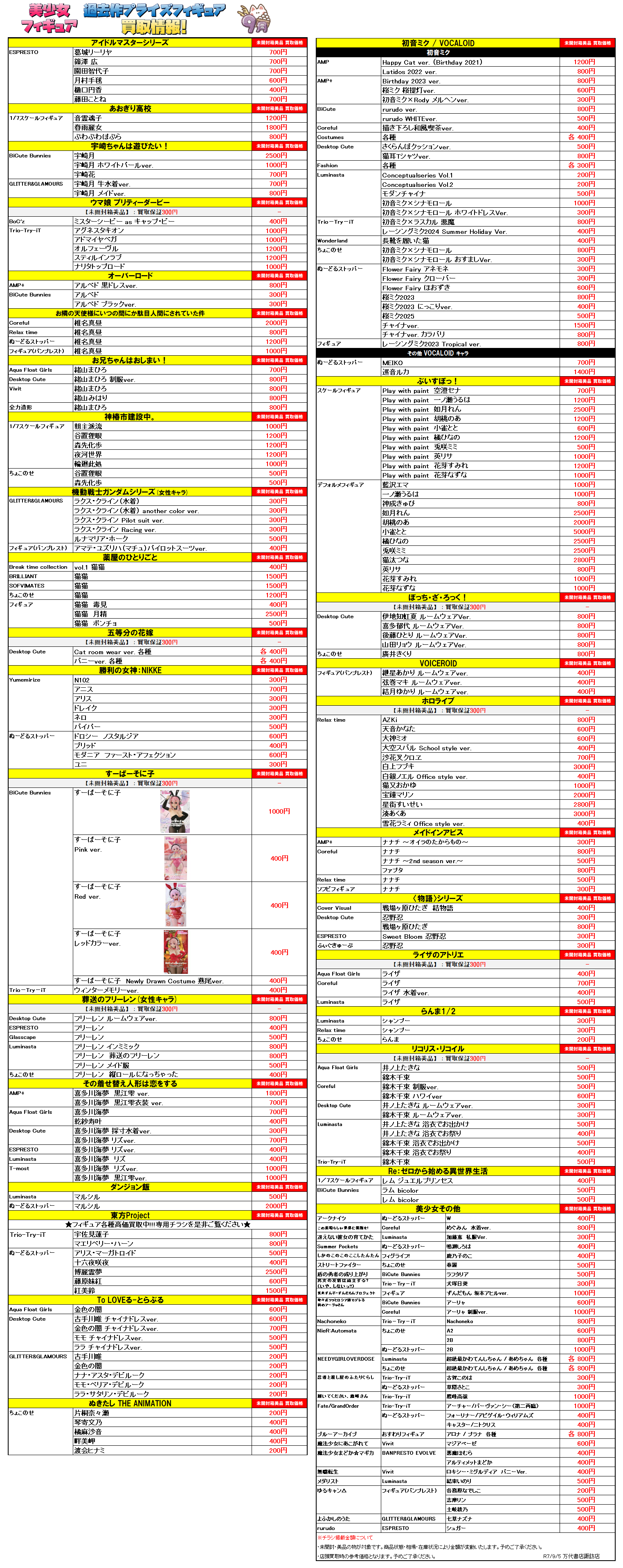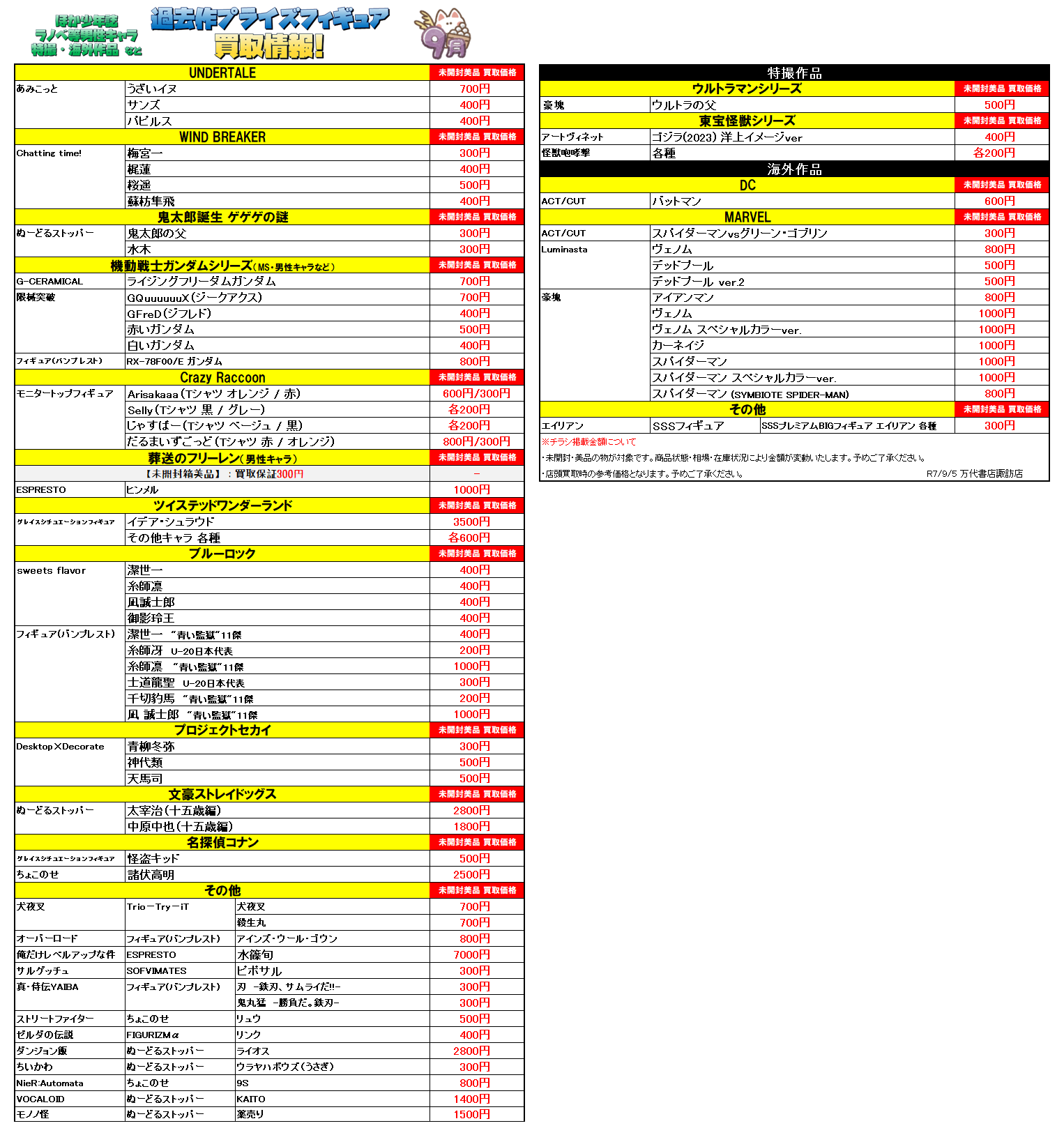 また、以前に登場したフィギュアの買取参考価格表も掲載いたします ^^) _旦