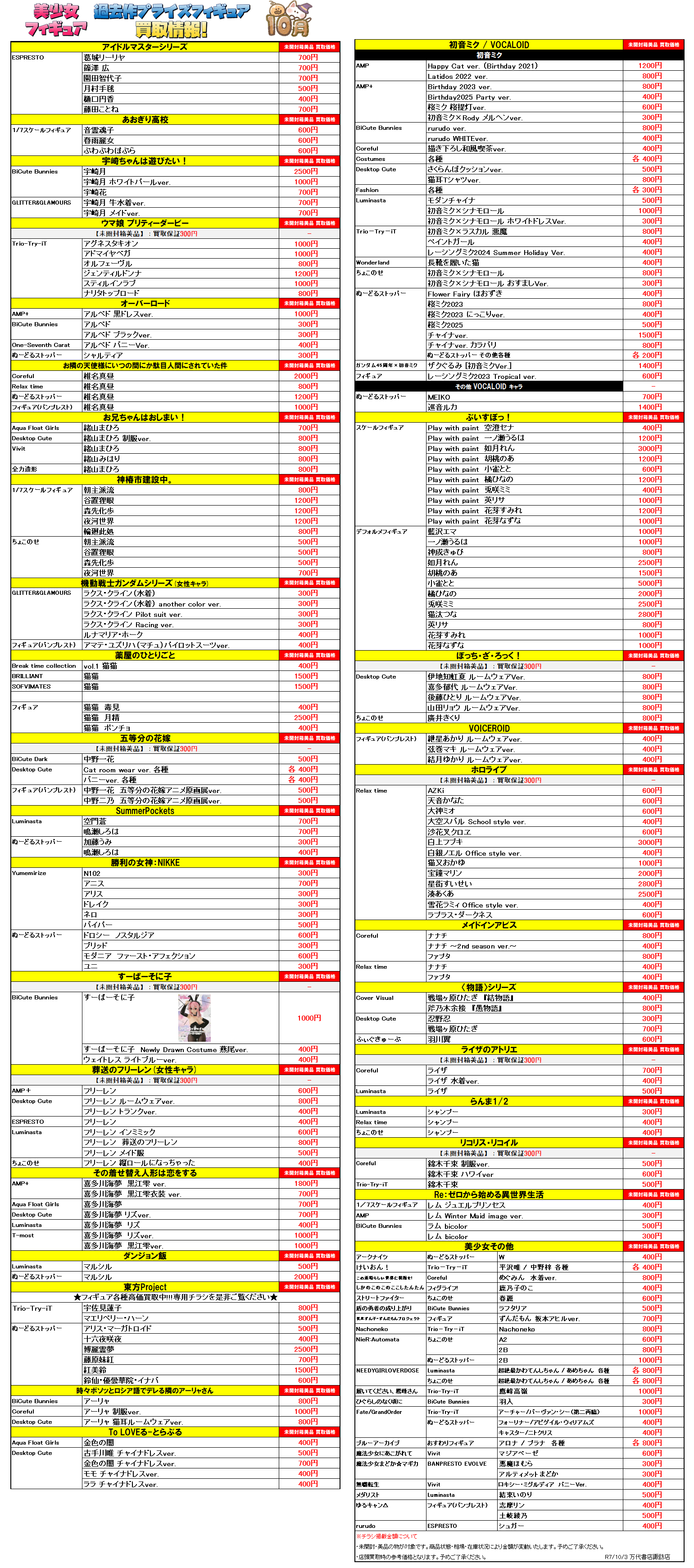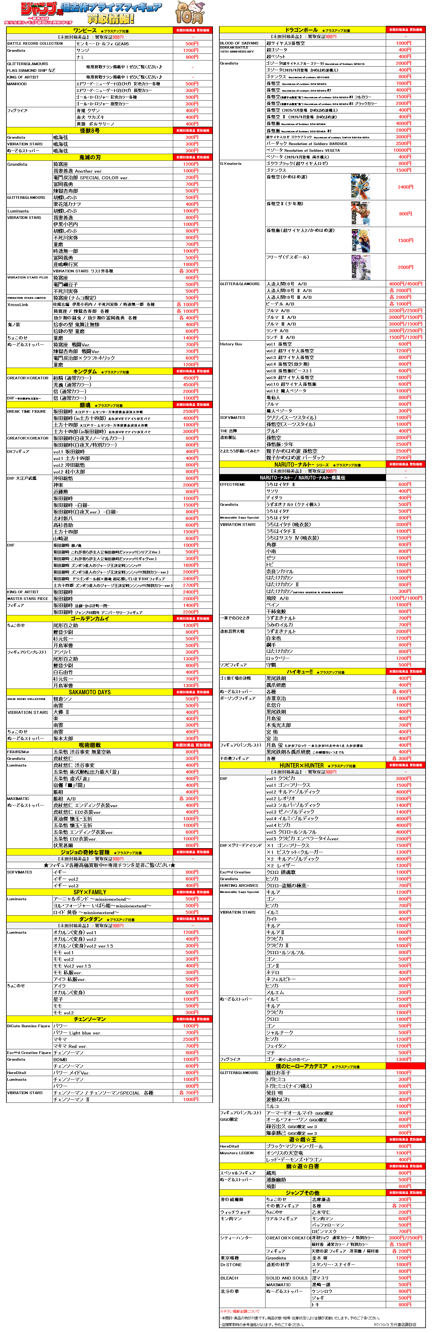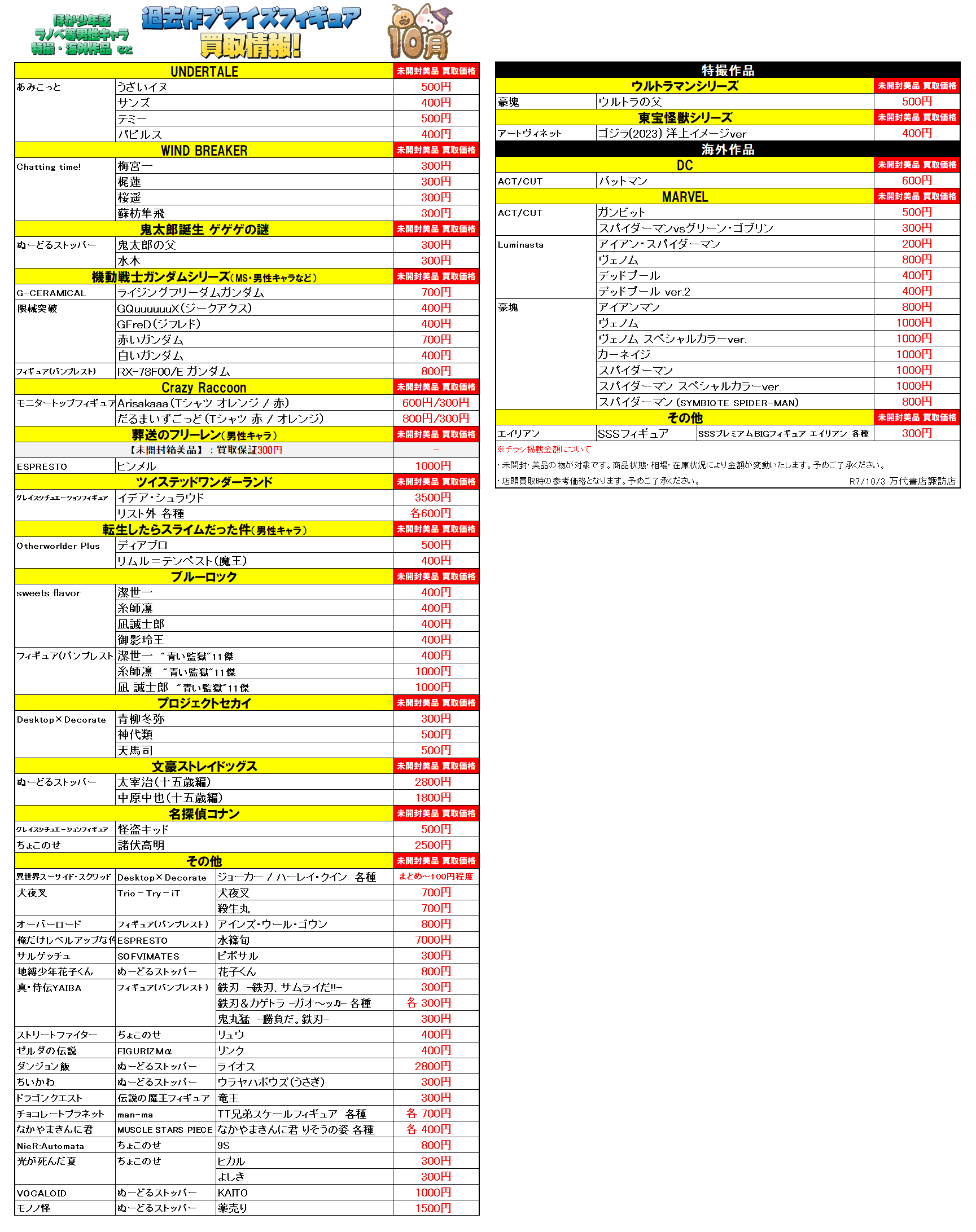 以前に登場したフィギュアの買取参考価格表を作成いたしました(*>v<)ノ
