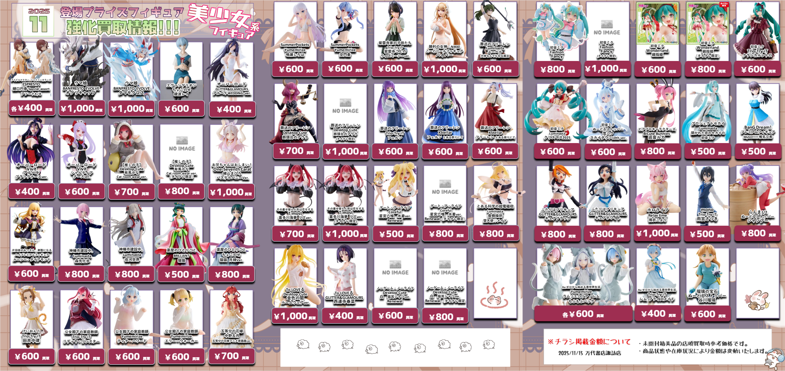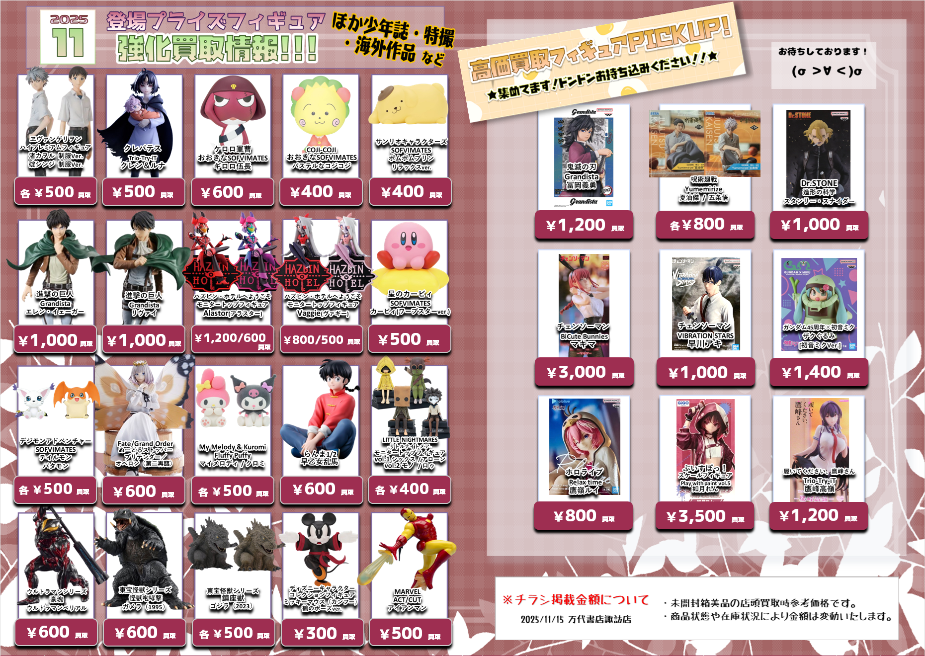 今月登場予定のプライズフィギュアの買取情報を更新いたしました(*>v<)ノ
