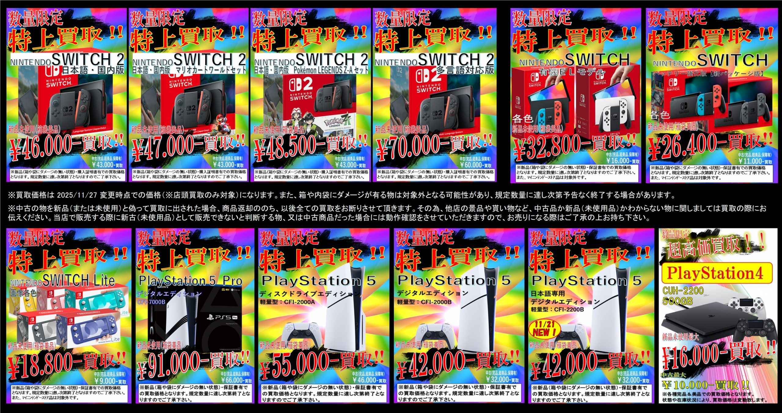 ※買取価格は 2025/11/27 変更時点での価格になります。規定数量に達し次第上記金額での買取は終了となります。