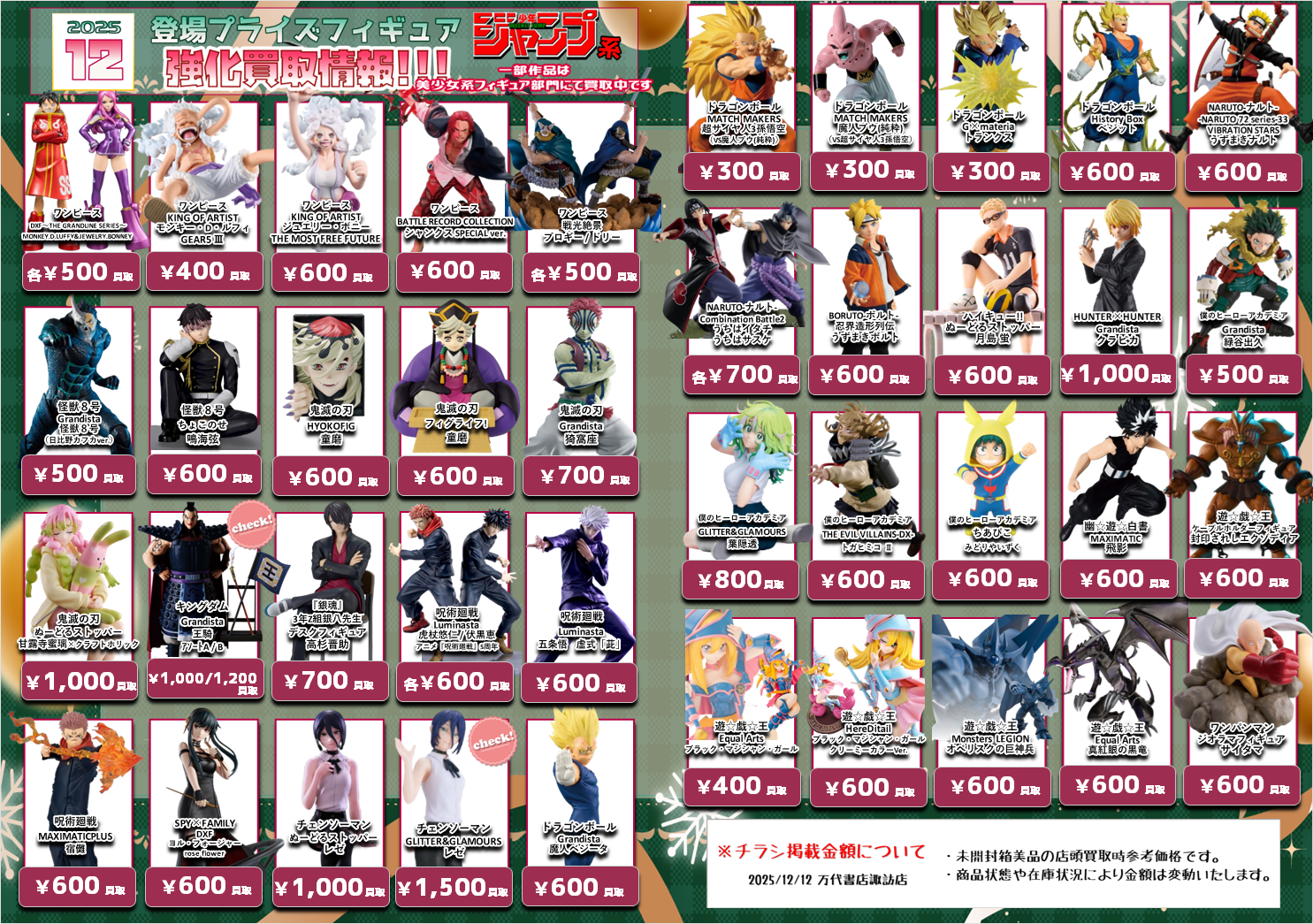 今月登場予定のプライズフィギュアの買取情報を更新いたしました(*>v<)ノ