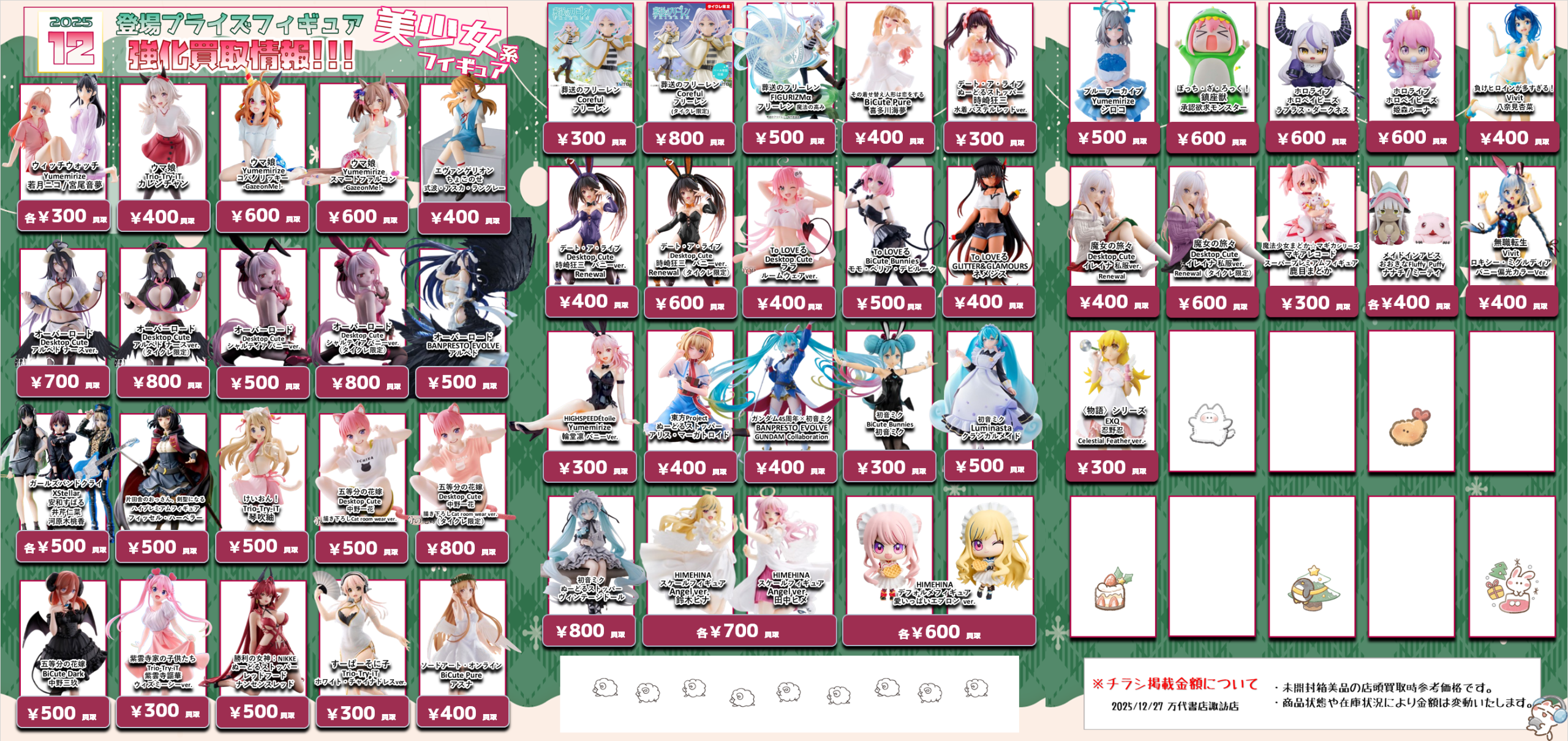 今月登場予定のプライズフィギュアの買取情報を更新いたしました(*>v<)ノ