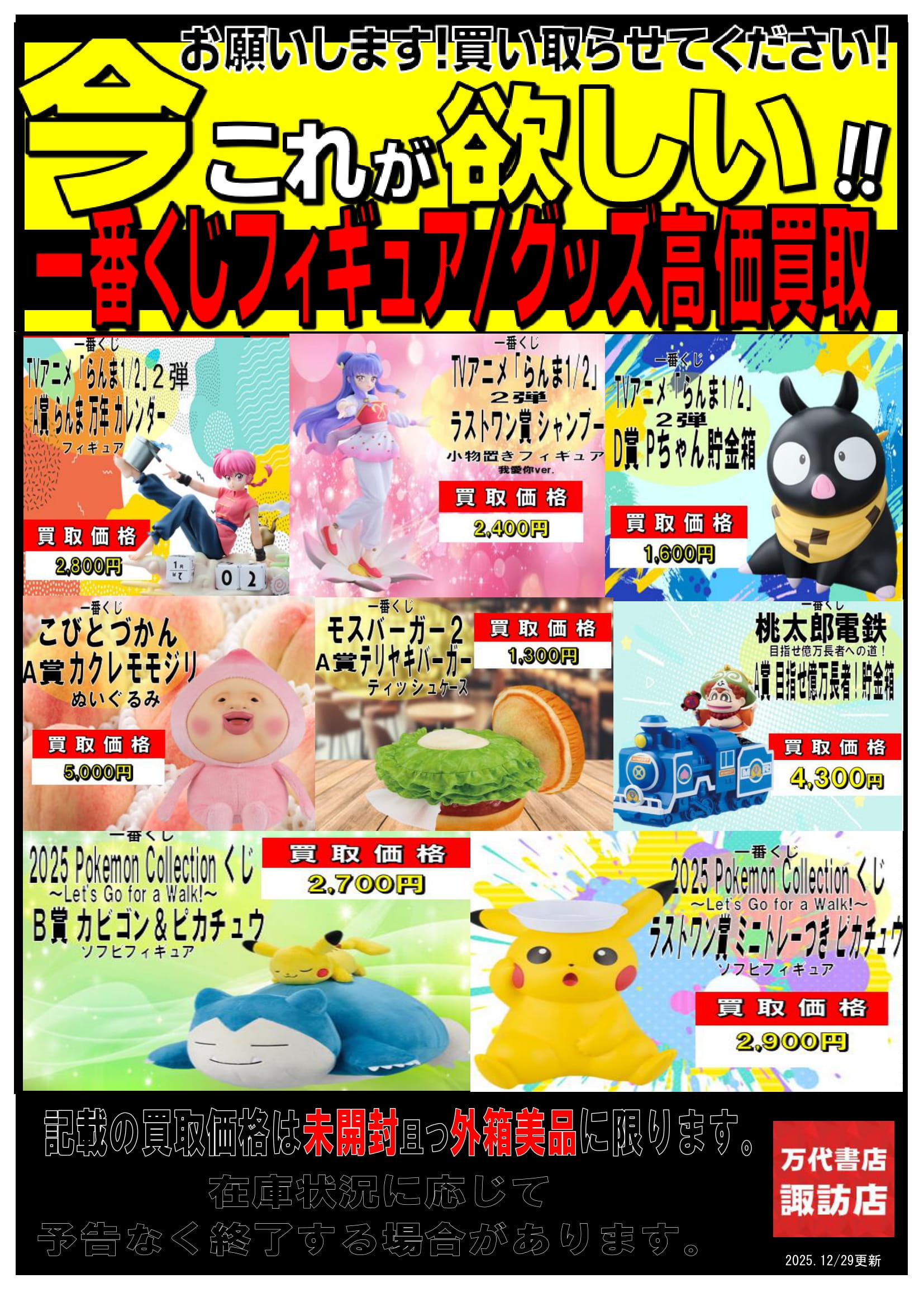 一番くじフィギュア等の買取情報を更新しました(^^)/