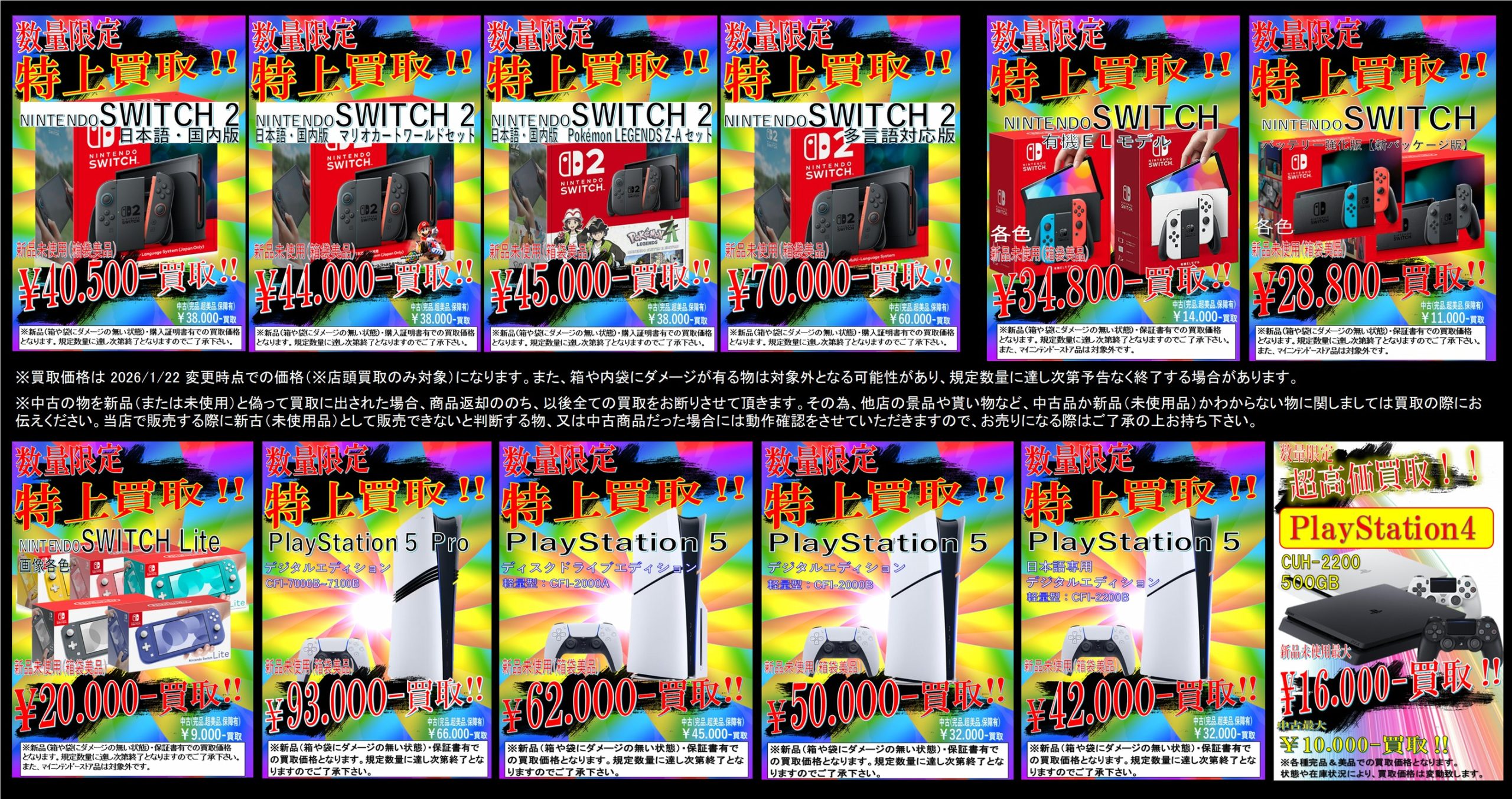 ※買取価格は 2026/1/22 変更時点での価格になります。規定数量に達し次第上記金額での買取は終了となります。