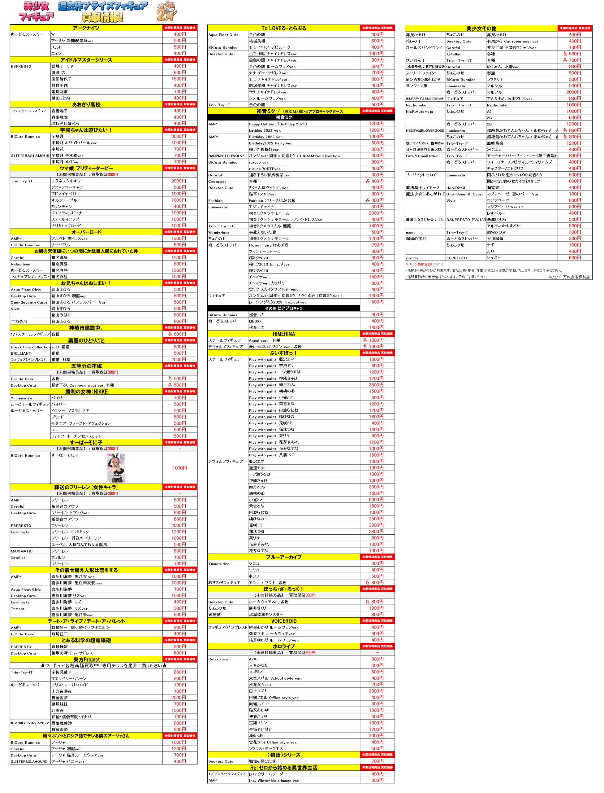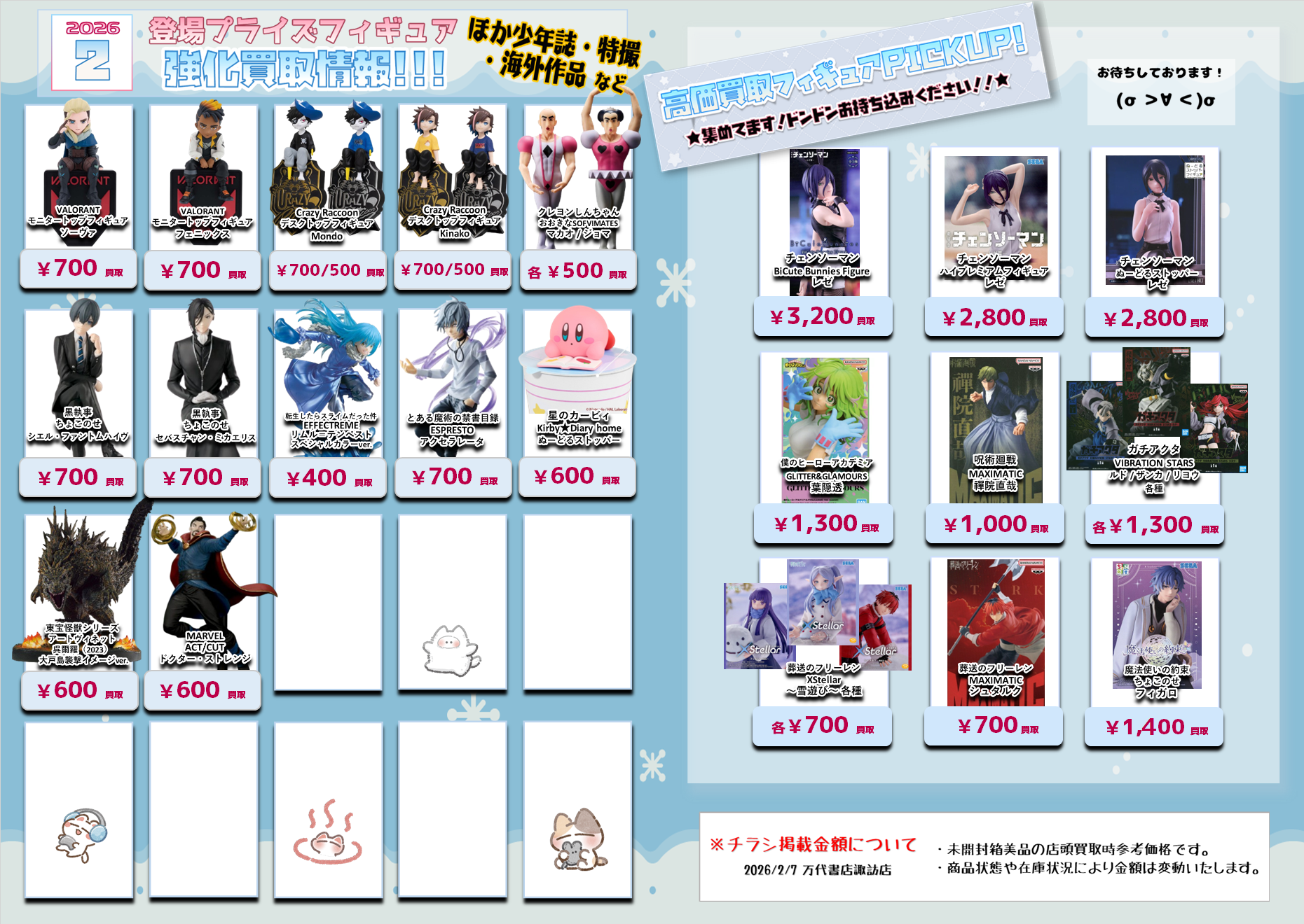 今月登場予定プライズフィギュアの買取チラシと、