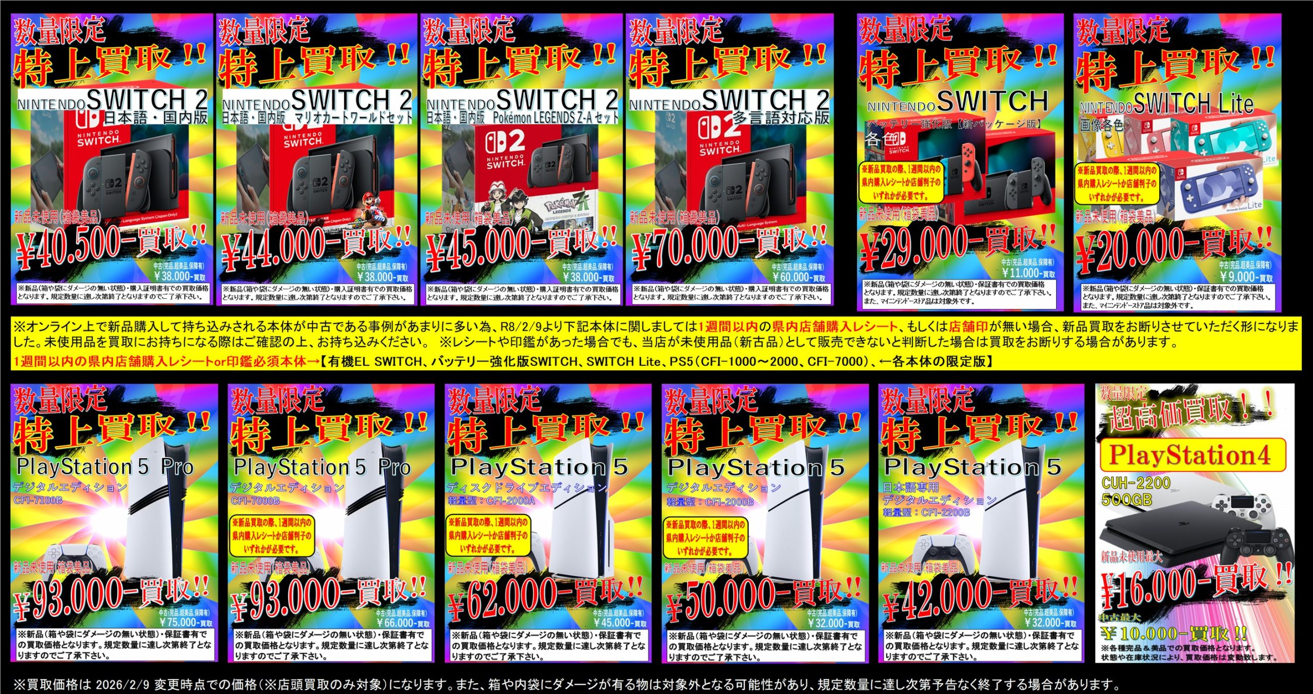 ※買取価格は 2026/2/9 変更時点での価格になります。規定数量に達し次第上記金額での買取は終了となります。