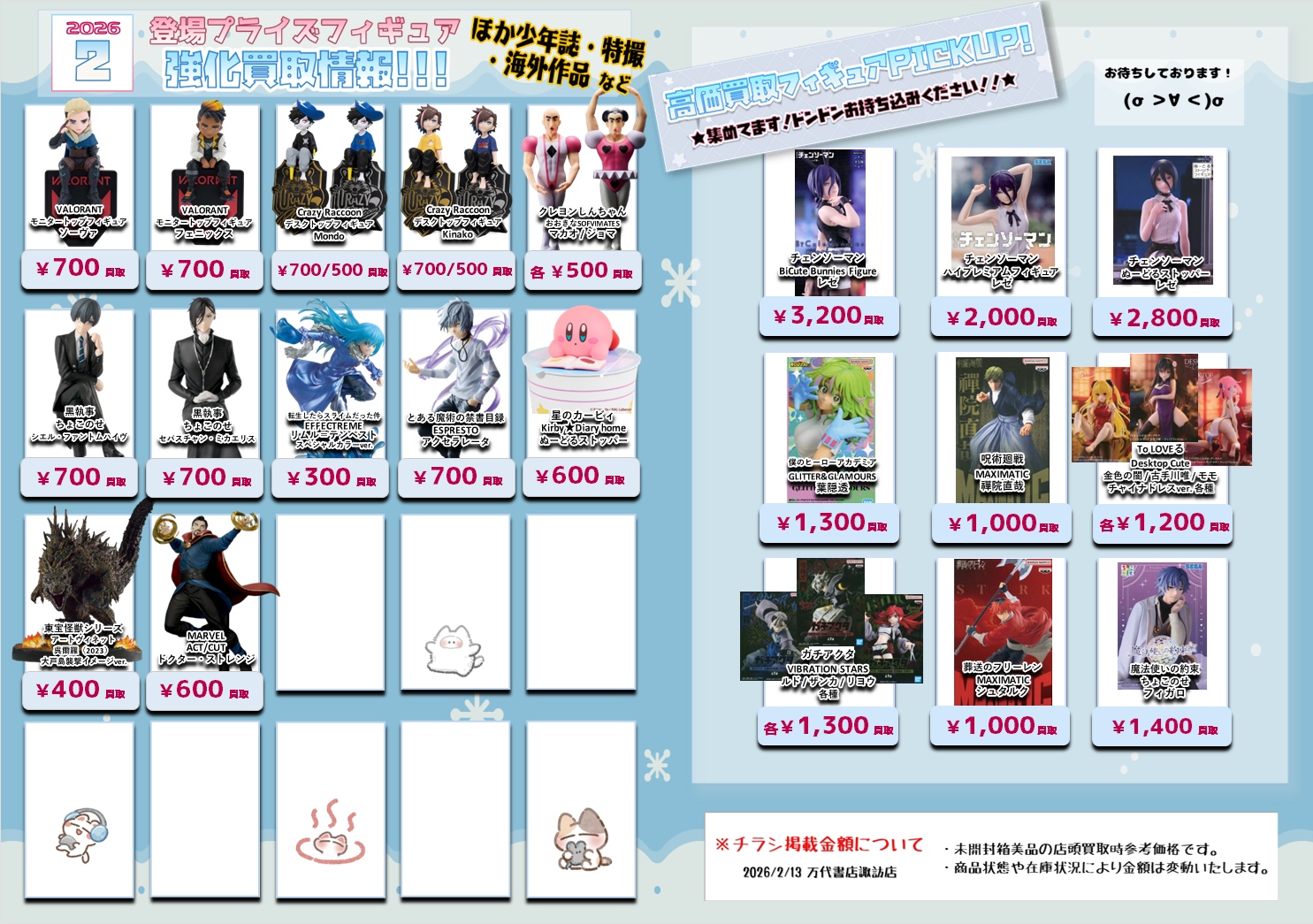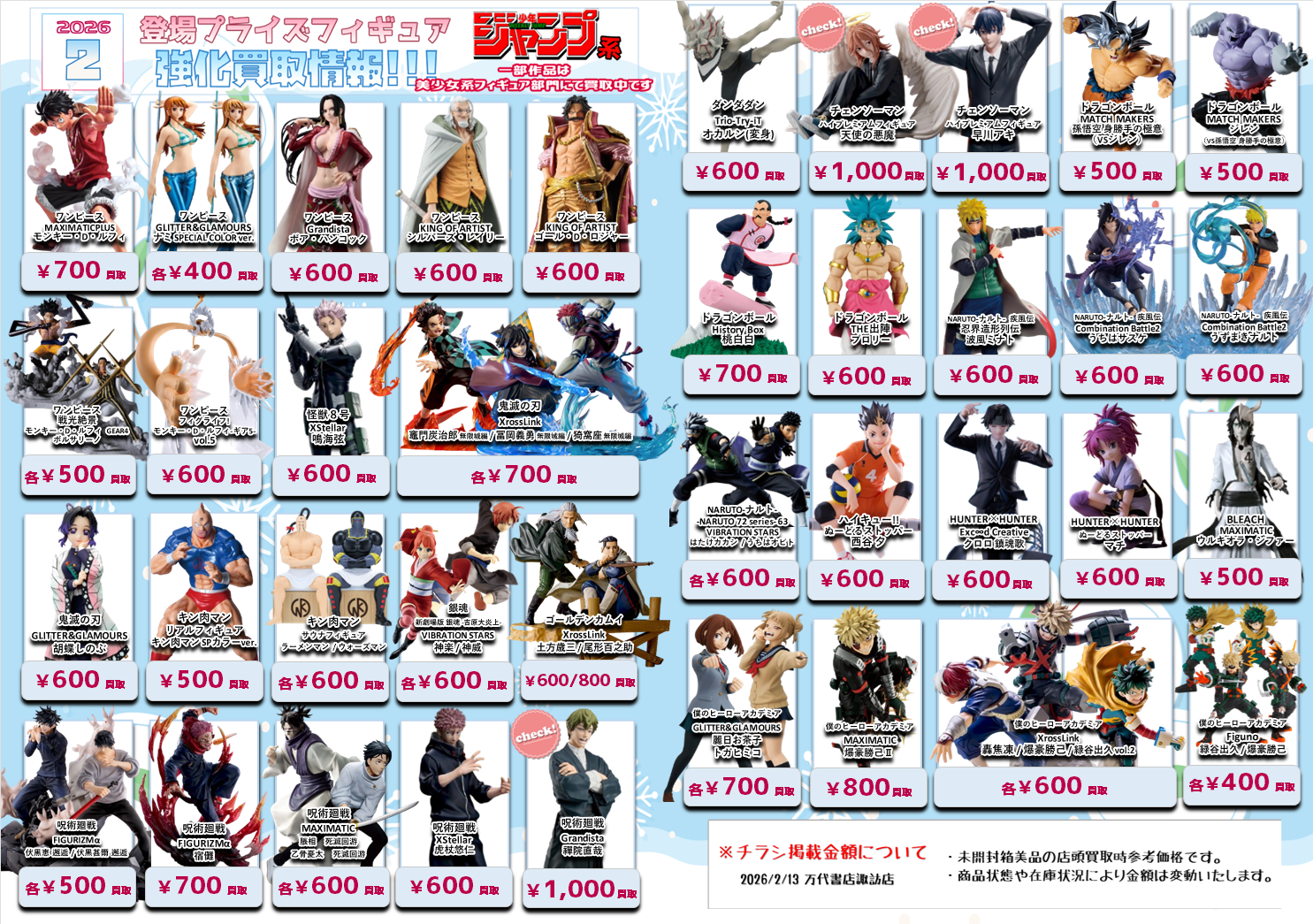 今月登場予定のプライズフィギュアの買取情報を更新いたしました(*>v<)ノ